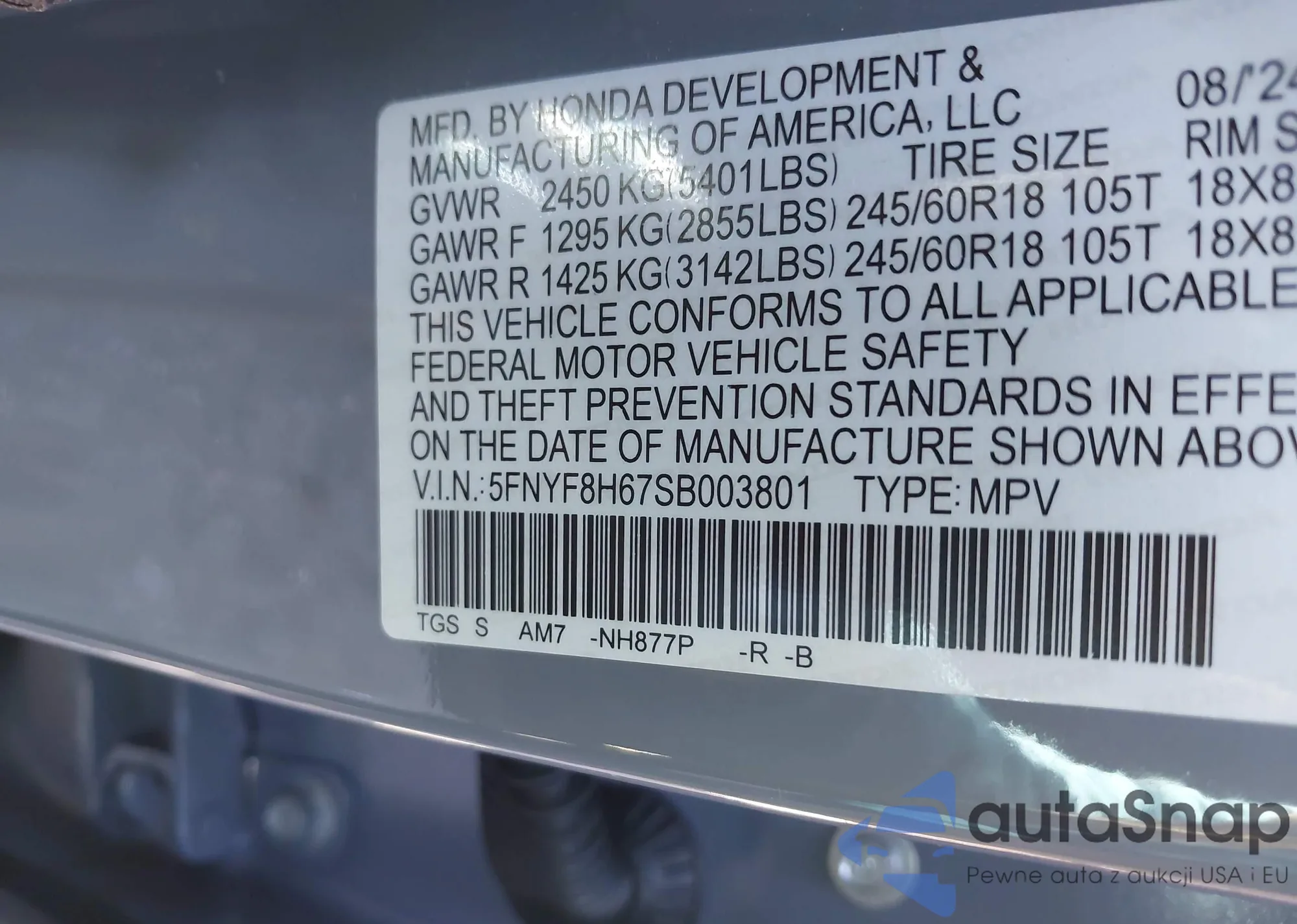 Samochód Honda Passport 2025 (VIN 5FNYF8H67SB003801) nie był wcześniej licytowany. Dokumenty są czyste, przebieg odpowiada lub jest niższy niż średnia rynku. Sprzedaje go firma ubezpieczeniowa – polecamy zakup. Dostawa do portu zajmie ok. 6–8 tygodni.