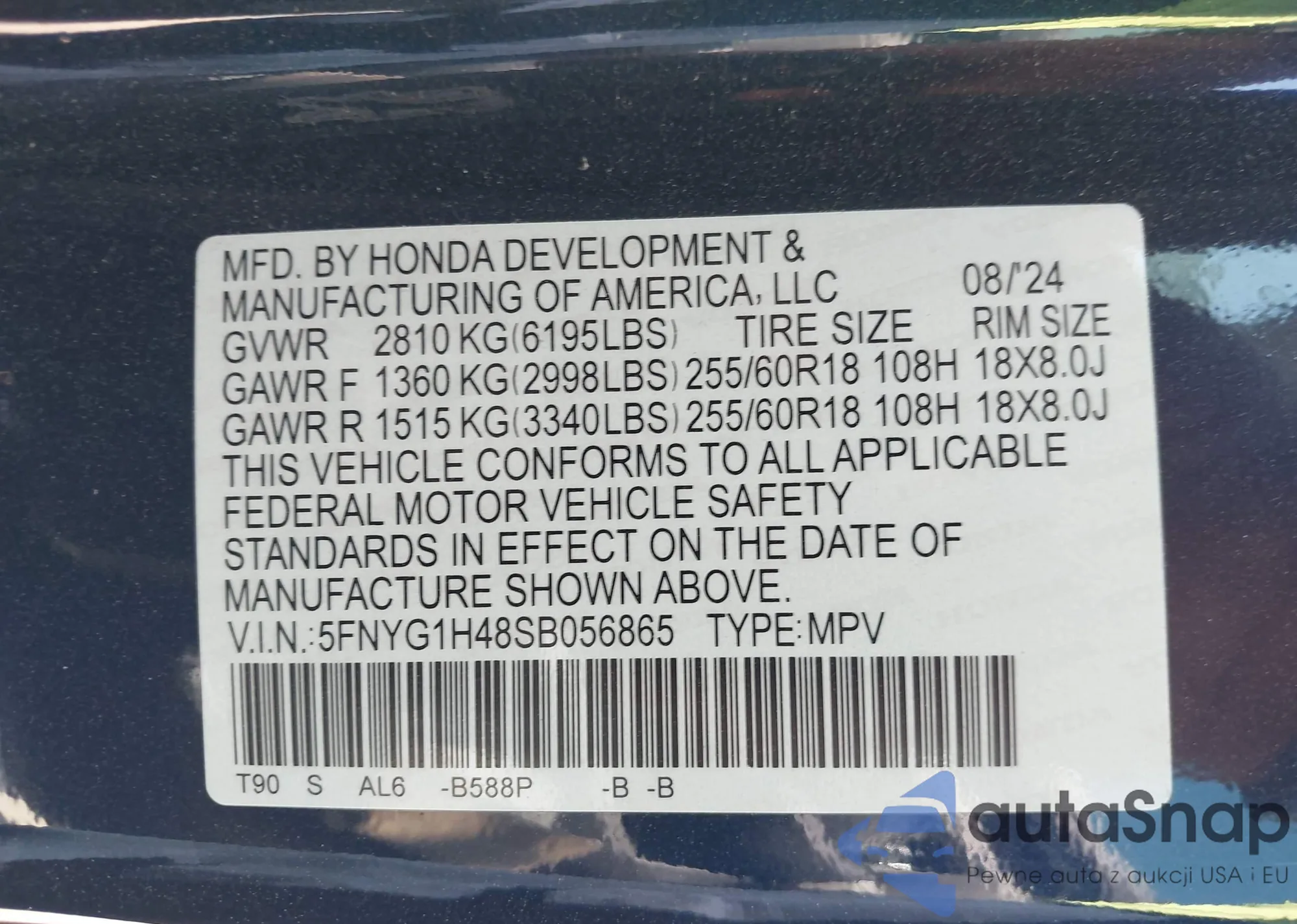 VIN: 5FNYG1H48SB056865