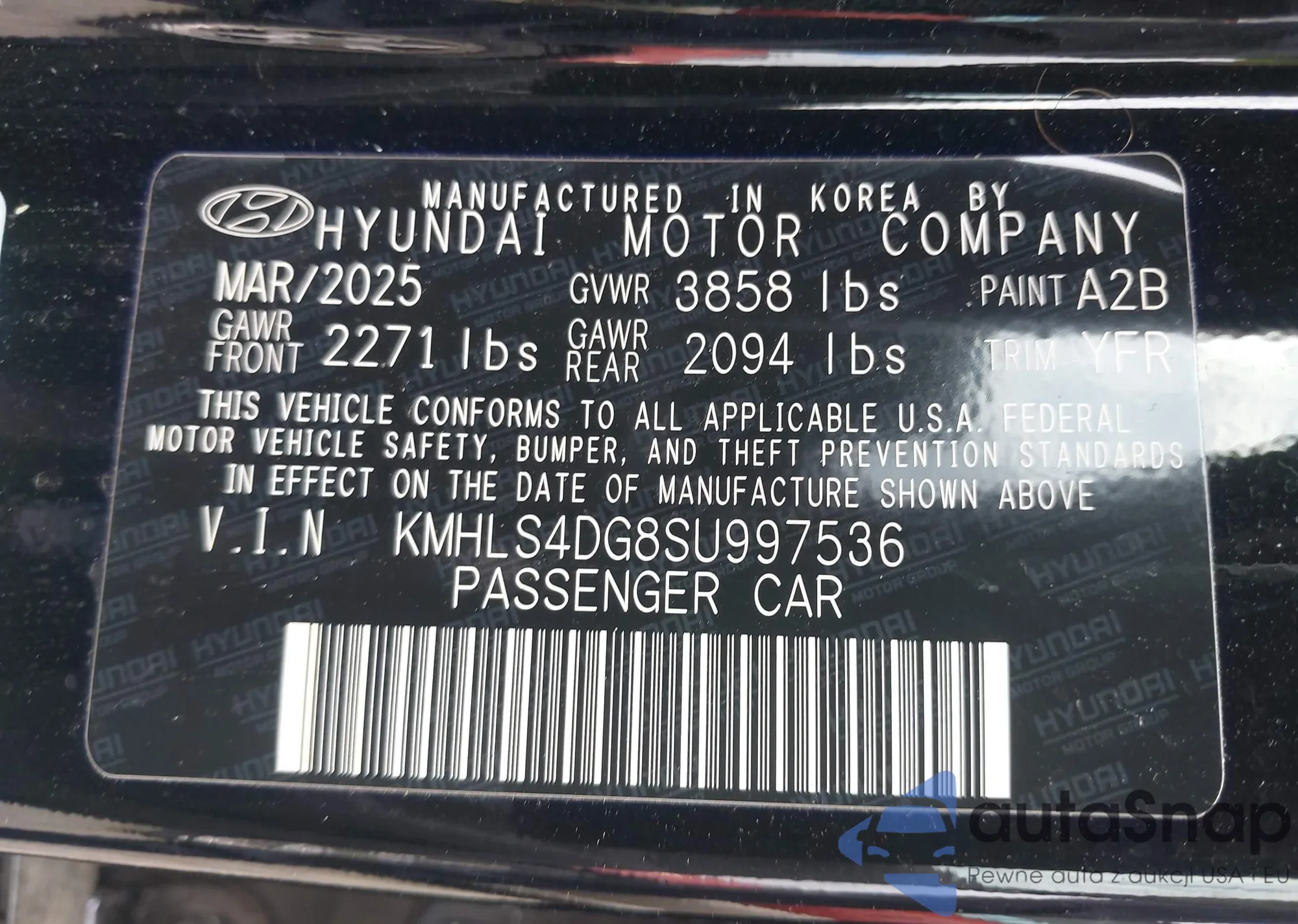 VIN: KMHLS4DG8SU997536