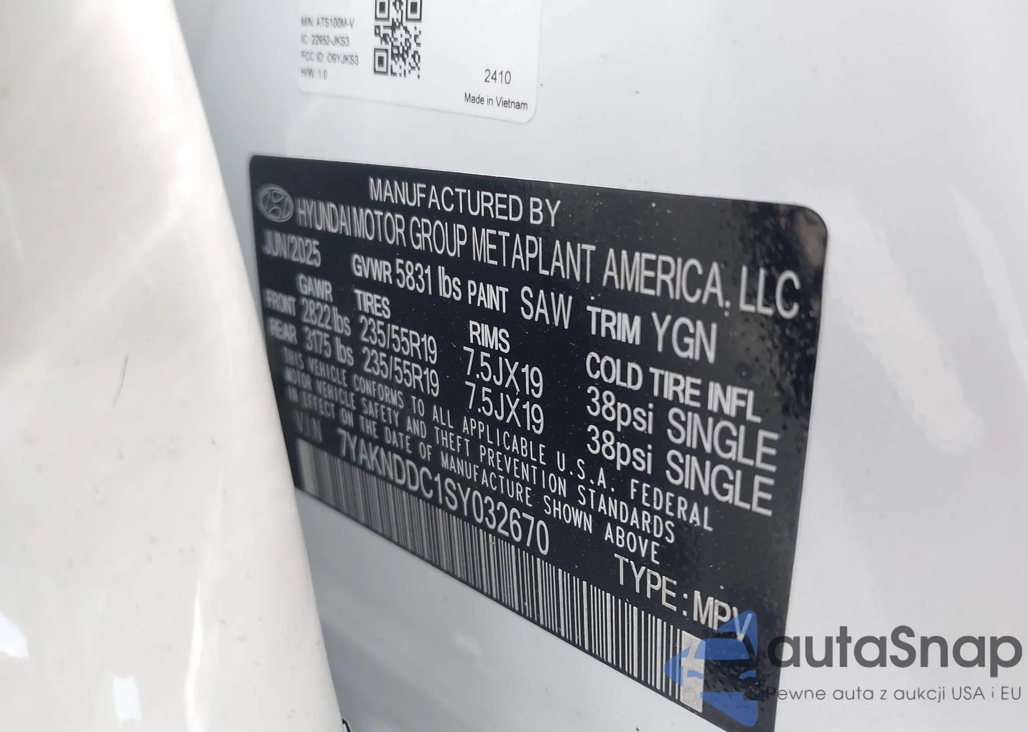 Samochód Hyundai IONIQ 5 2025 (VIN 7YAKNDDC1SY032670) nie był wcześniej licytowany. Dokumenty są czyste, przebieg odpowiada lub jest niższy niż średnia rynku. Sprzedaje go firma ubezpieczeniowa – polecamy zakup. Dostawa do portu zajmie ok. 6–8 tygodni.