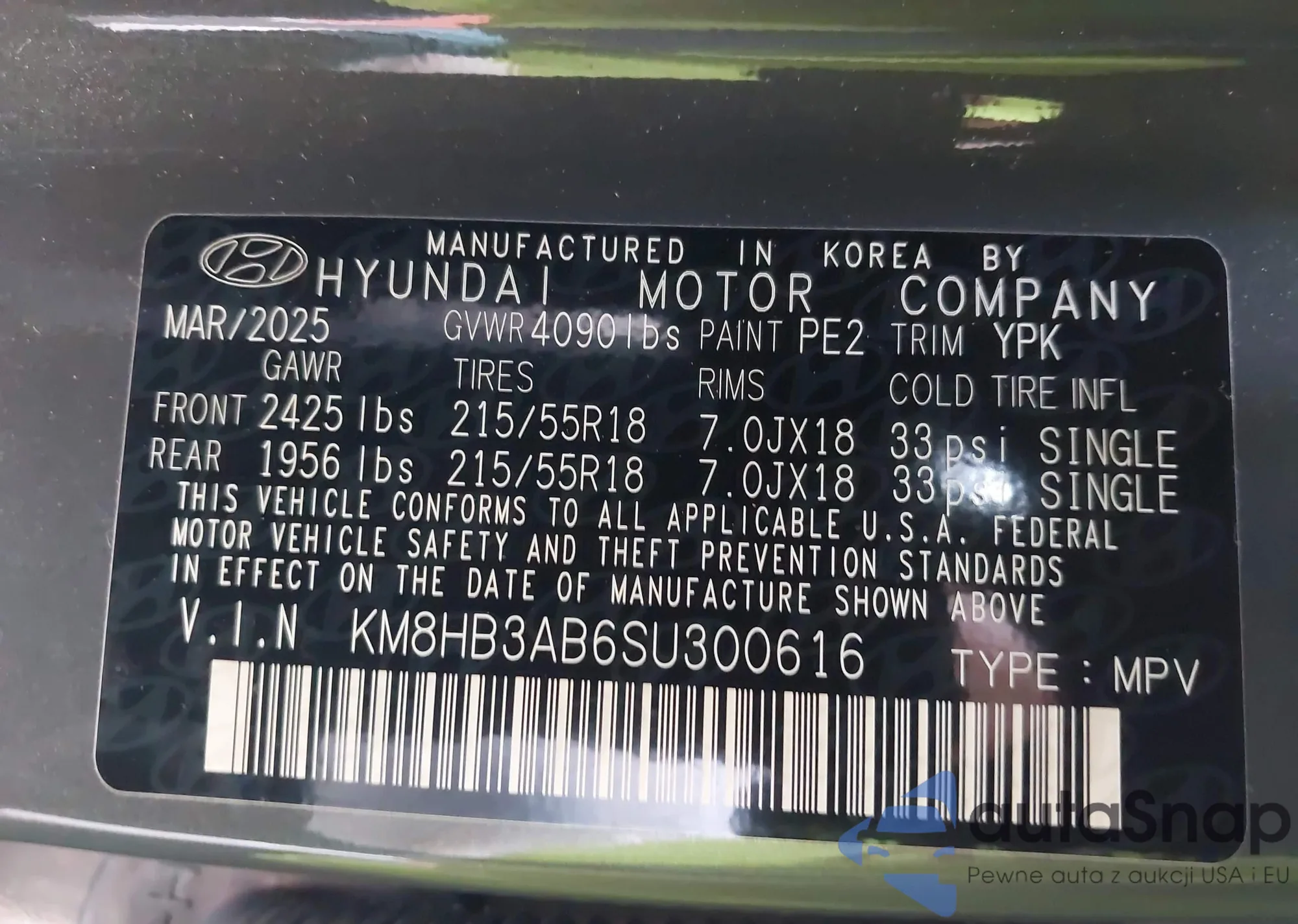 VIN: KM8HB3AB6SU300616
