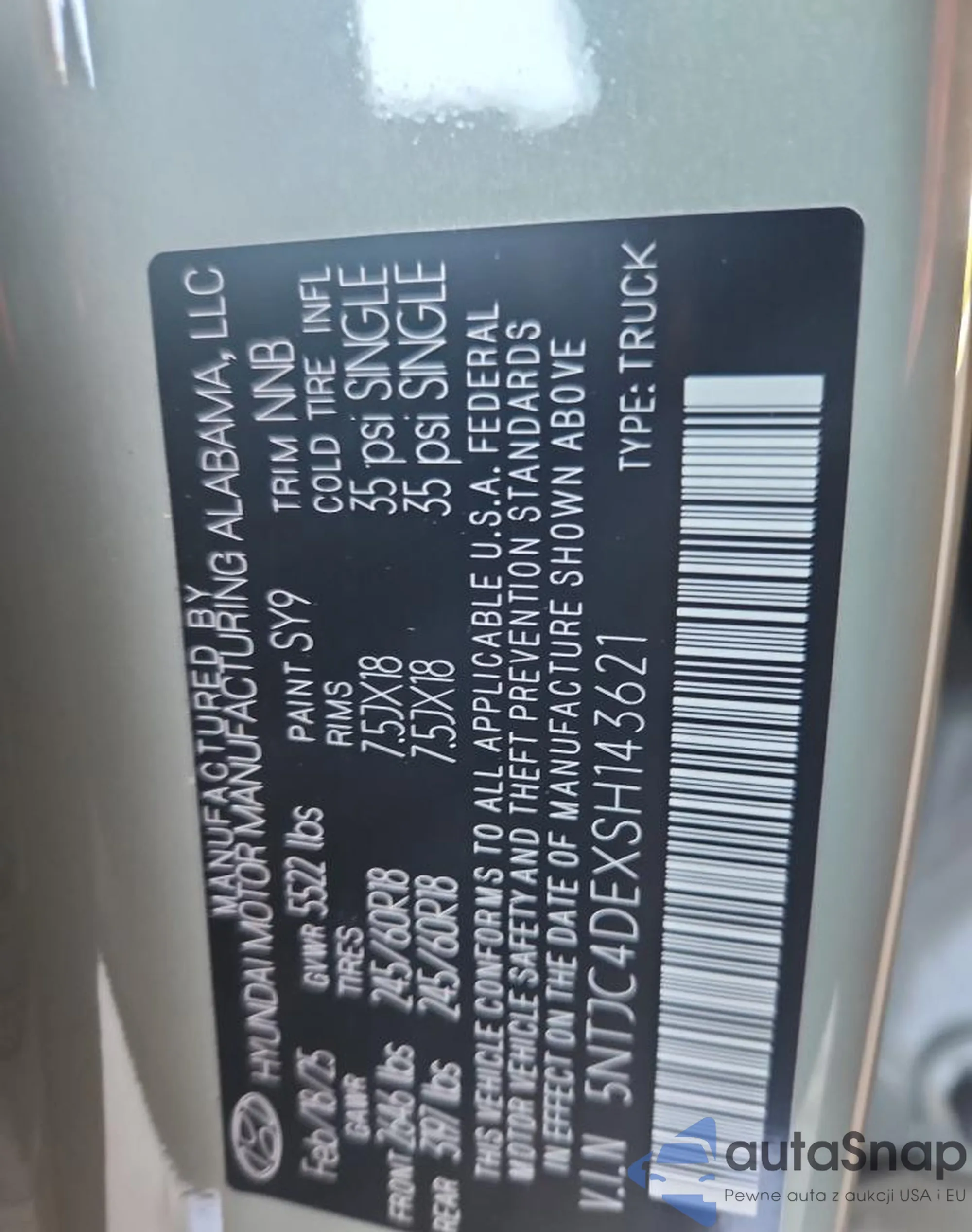 VIN: 5NTJC4DEXSH143621
