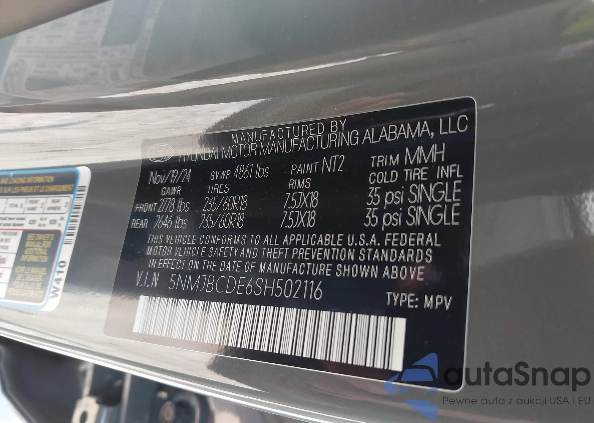 • VIN: 5NMJBCDE6SH502116