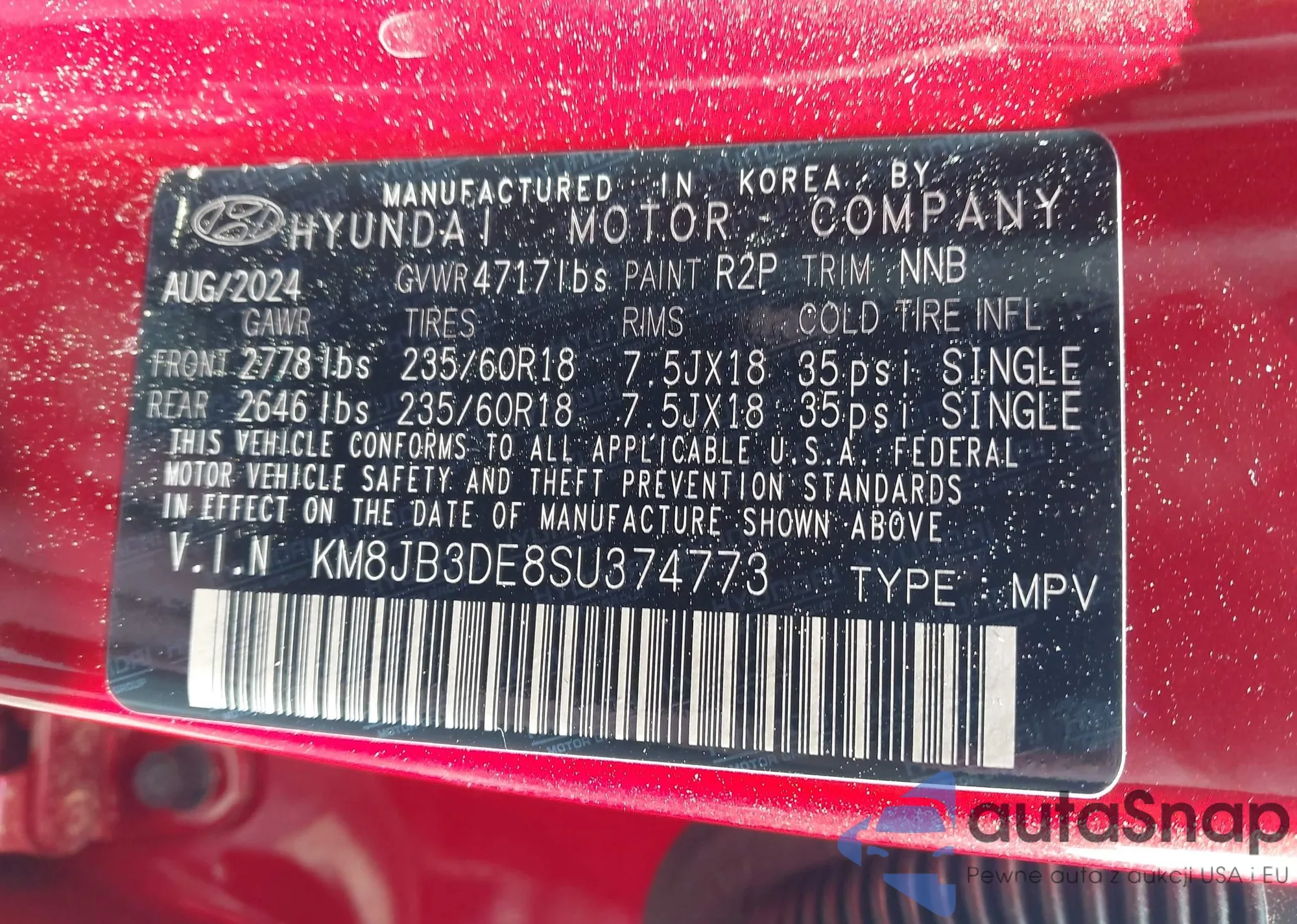 VIN: KM8JB3DE8SU374773