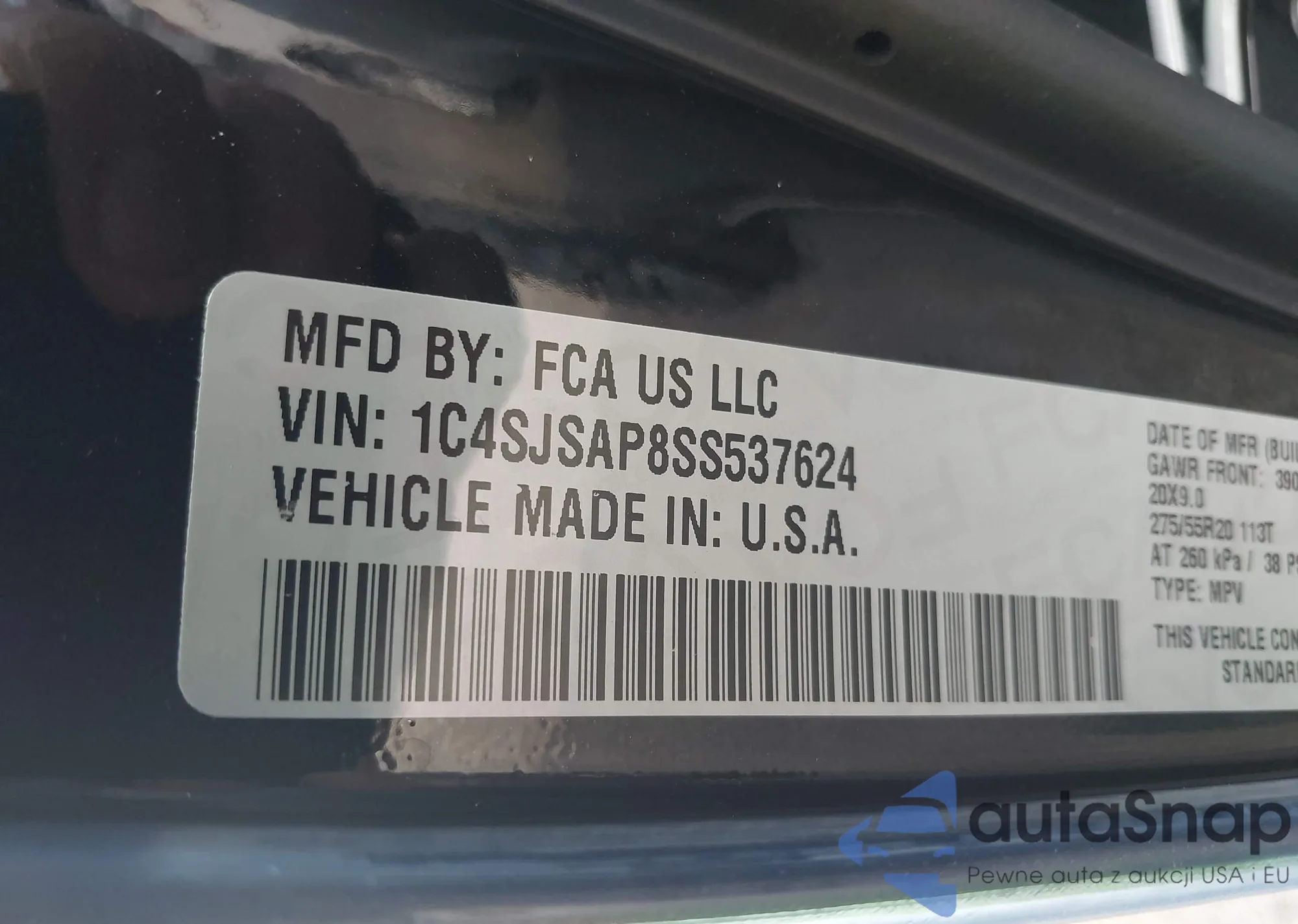 • VIN: 1C4SJSAP8SS537624