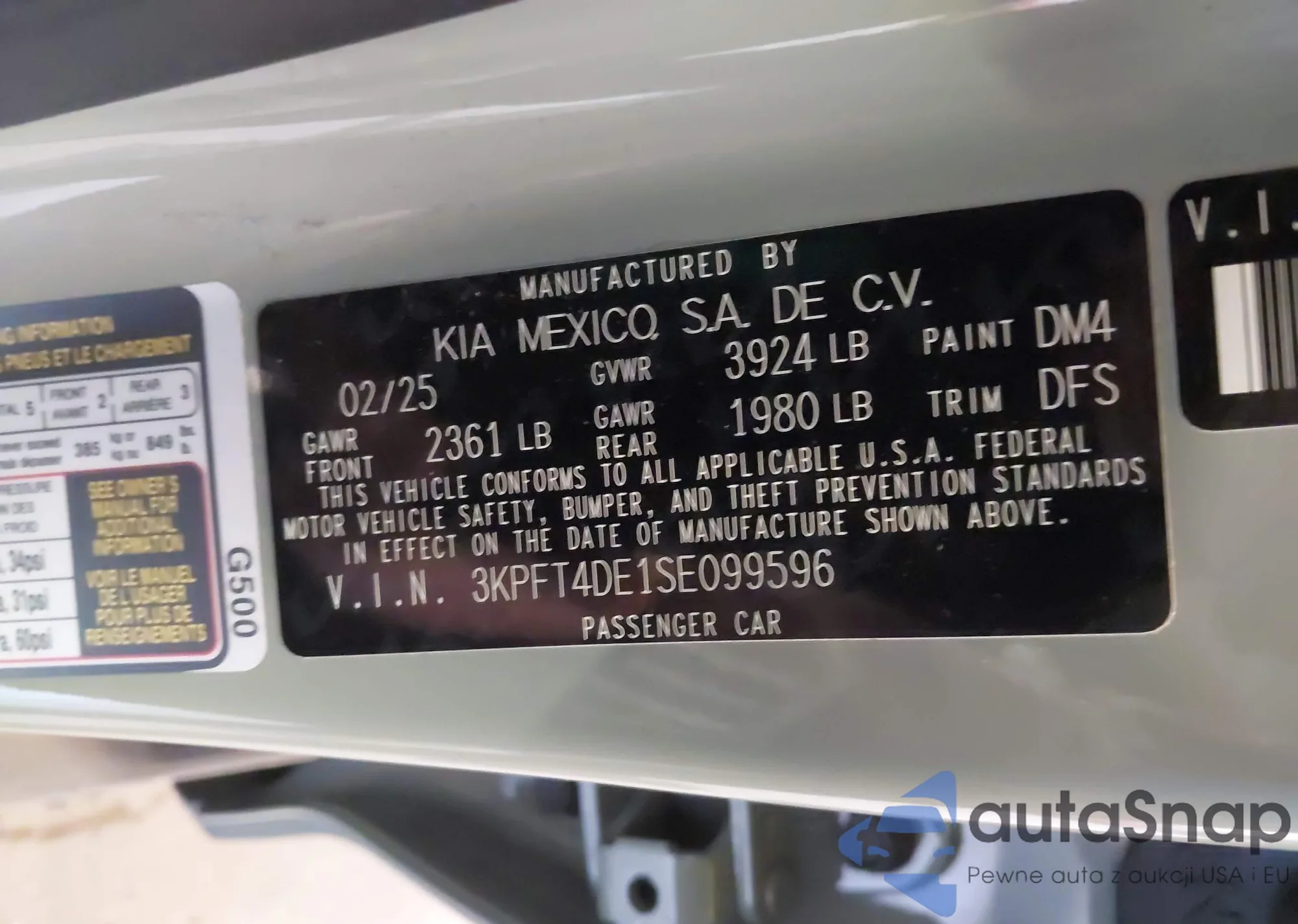 Samochód Kia K4 2025 (VIN 3KPFT4DE1SE099596) nie był wcześniej licytowany. Dokumenty są czyste, przebieg odpowiada lub jest niższy niż średnia rynku. Sprzedaje go firma ubezpieczeniowa – polecamy zakup. Dostawa do portu zajmie ok. 6–8 tygodni.