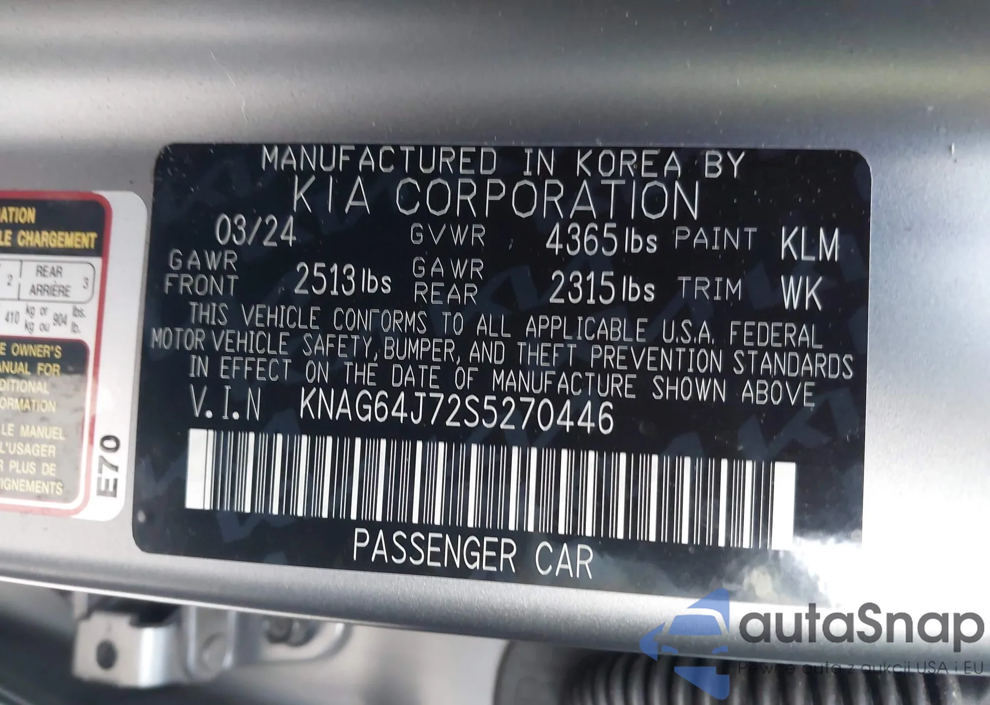 • VIN: KNAG64J72S5270446