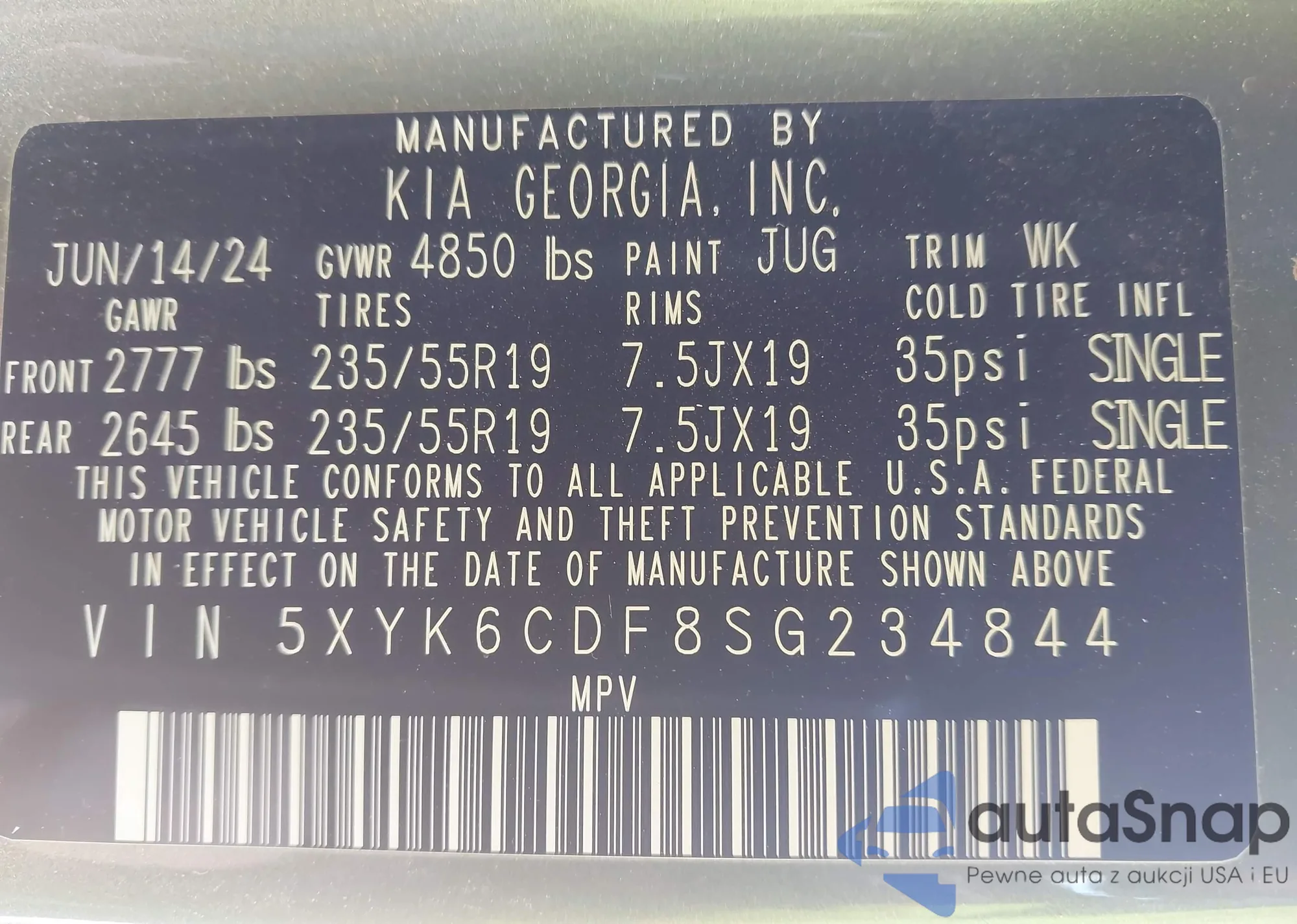 Samochód Kia Sportage 2025 (VIN 5XYK6CDF8SG234844) ma dokumenty uniemożliwiające rejestrację. Mogą pojawić się trudności przy eksporcie i rejestracji. Skontaktuj się z ekspertami AutaSnap w celu znalezienia alternatywy.