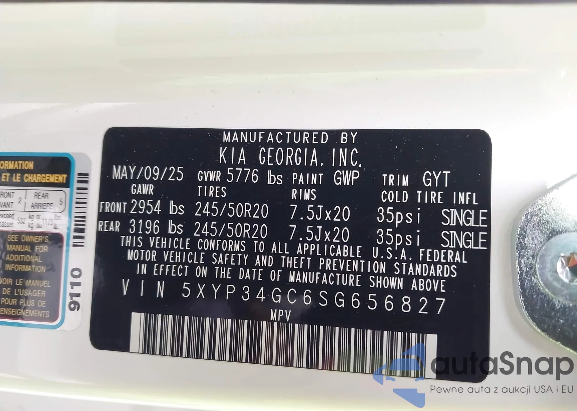 Samochód Kia Telluride 2025 (VIN 5XYP34GC6SG656827) nie był wcześniej licytowany. Dokumenty są czyste, przebieg odpowiada lub jest niższy niż średnia rynku. Sprzedaje go firma ubezpieczeniowa – polecamy zakup. Dostawa do portu zajmie ok. 6–8 tygodni.