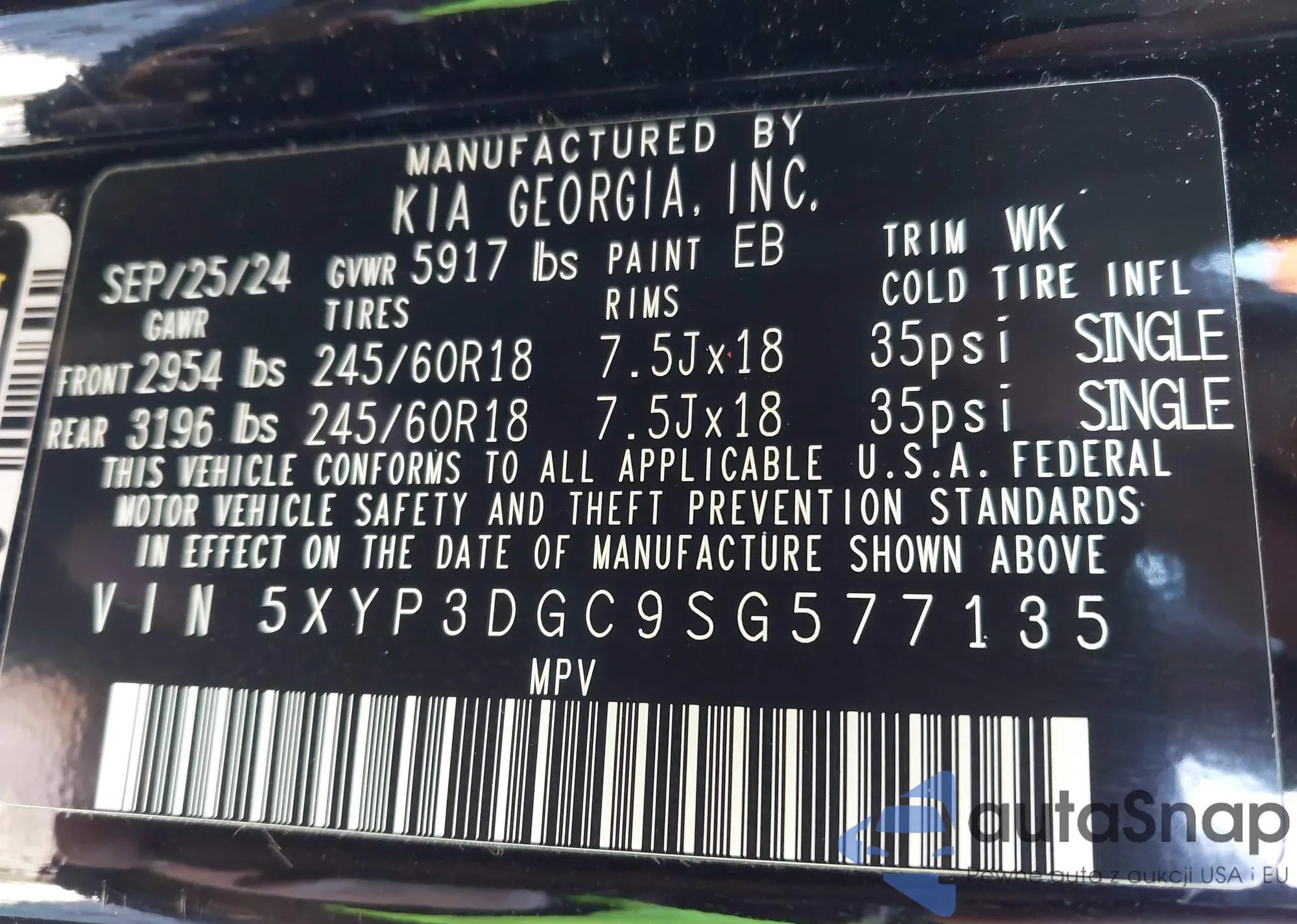 Samochód Kia Telluride 2025 (VIN 5XYP3DGC9SG577135) nie był wcześniej licytowany. Dokumenty są czyste, przebieg odpowiada lub jest niższy niż średnia rynku. Sprzedaje go firma ubezpieczeniowa – polecamy zakup. Dostawa do portu zajmie ok. 6–8 tygodni.