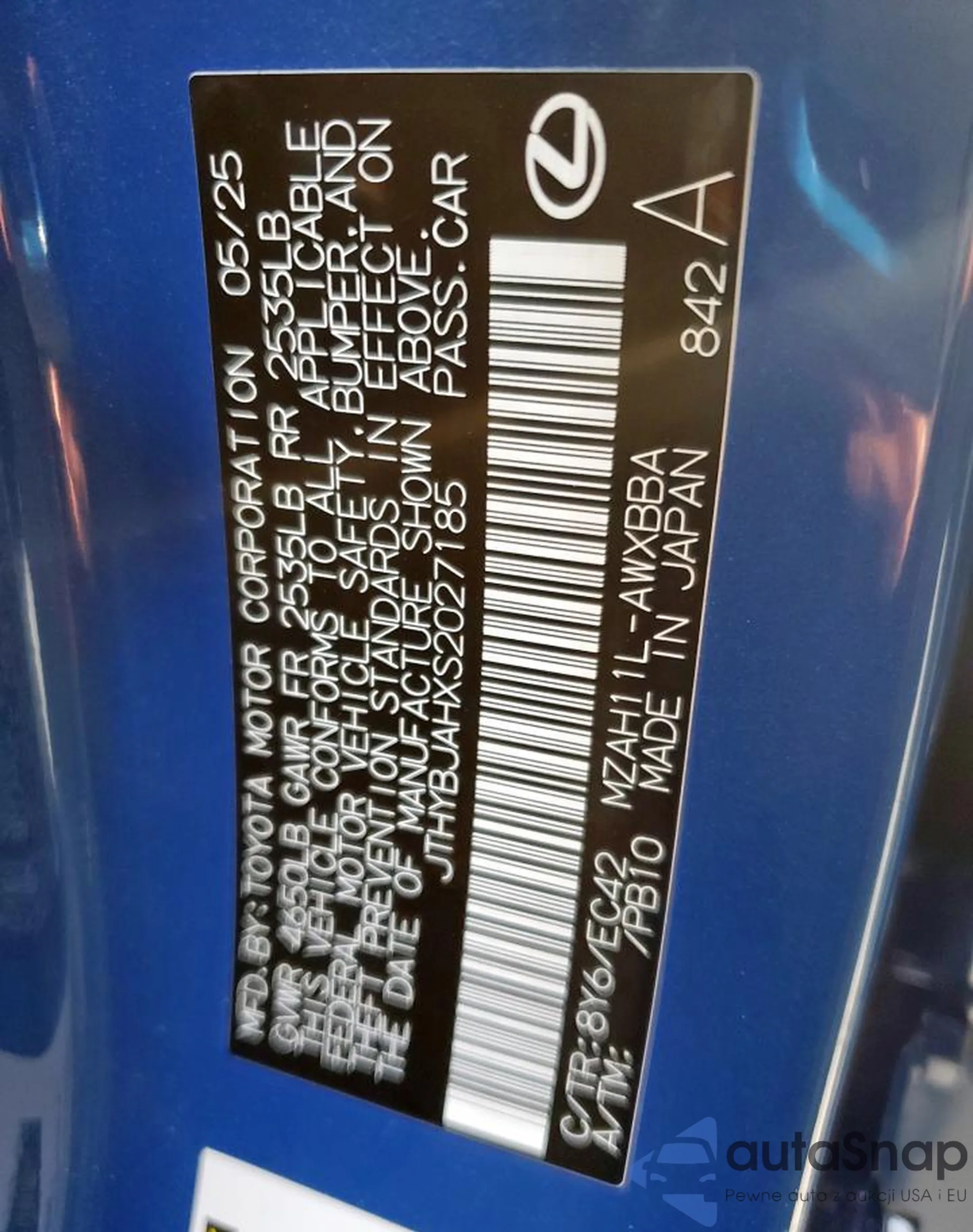 Samochód Lexus UX 2025 (VIN JTHYBJAHXS2027185) nie był wcześniej licytowany. Dokumenty są czyste, przebieg odpowiada lub jest niższy niż średnia rynku. Sprzedaje go firma ubezpieczeniowa – polecamy zakup. Dostawa do portu zajmie ok. 6–8 tygodni.