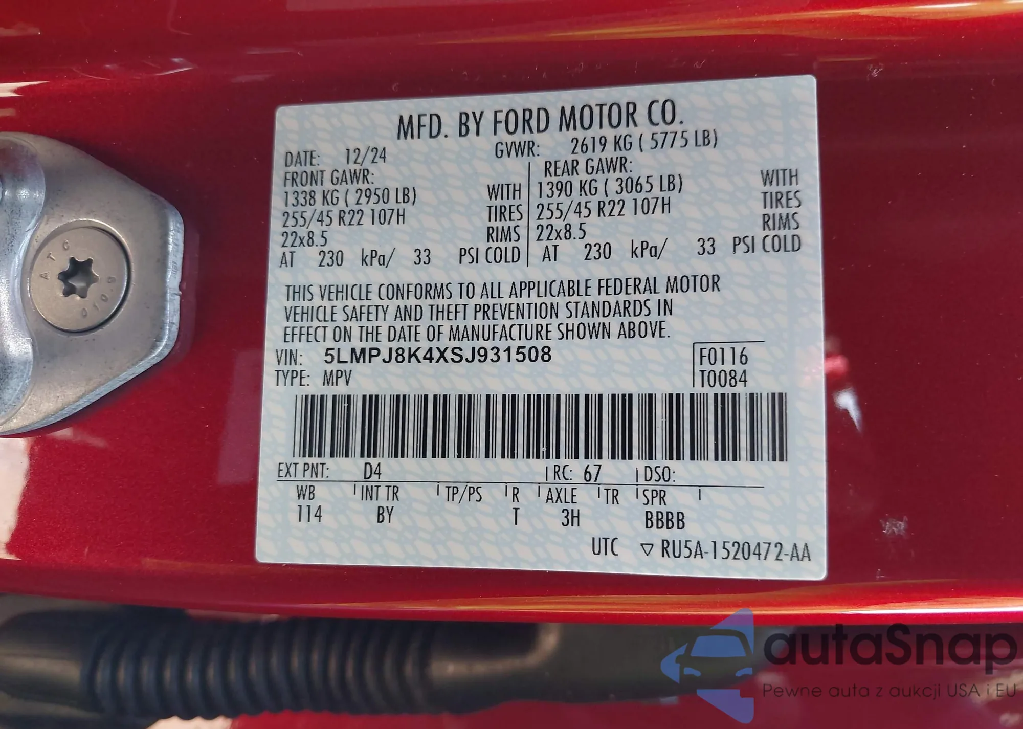 VIN: 5LMPJ8K4XSJ931508