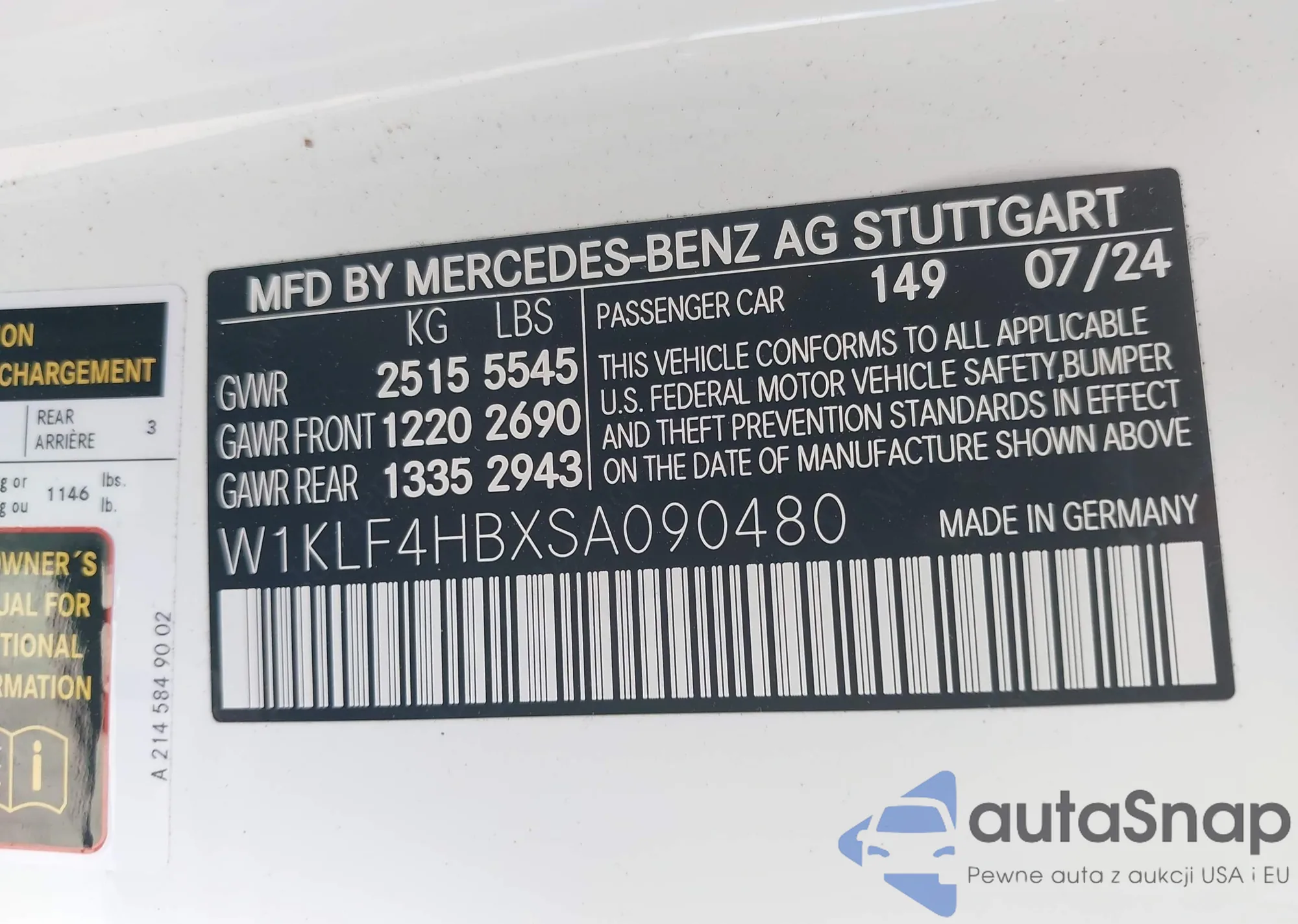• VIN: W1KLF4HBXSA090480