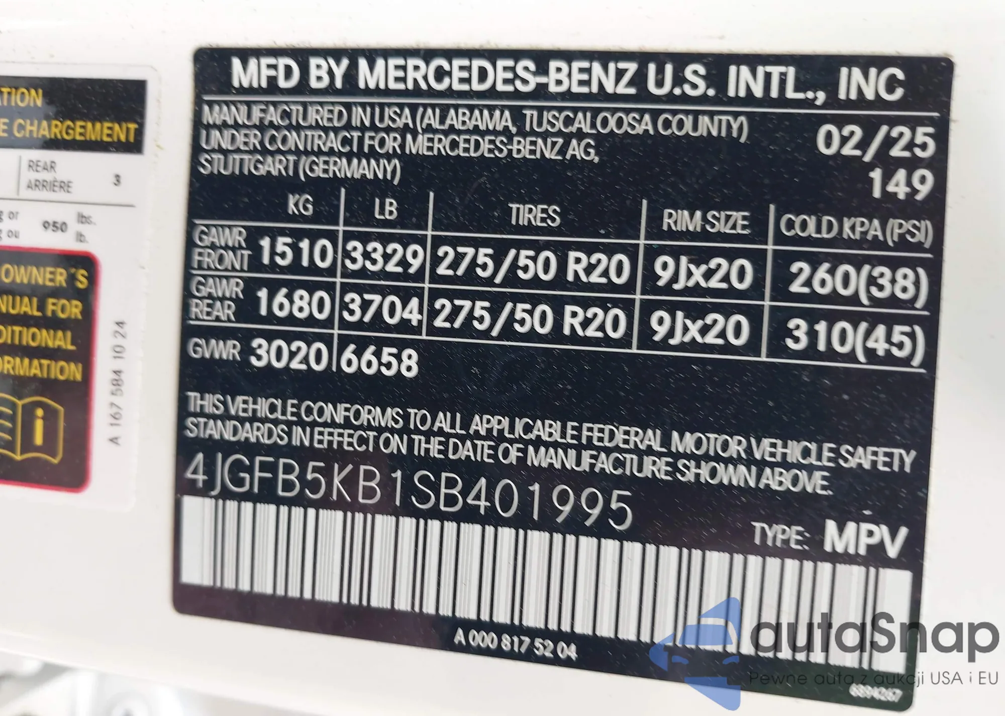 VIN: 4JGFB5KB1SB401995
