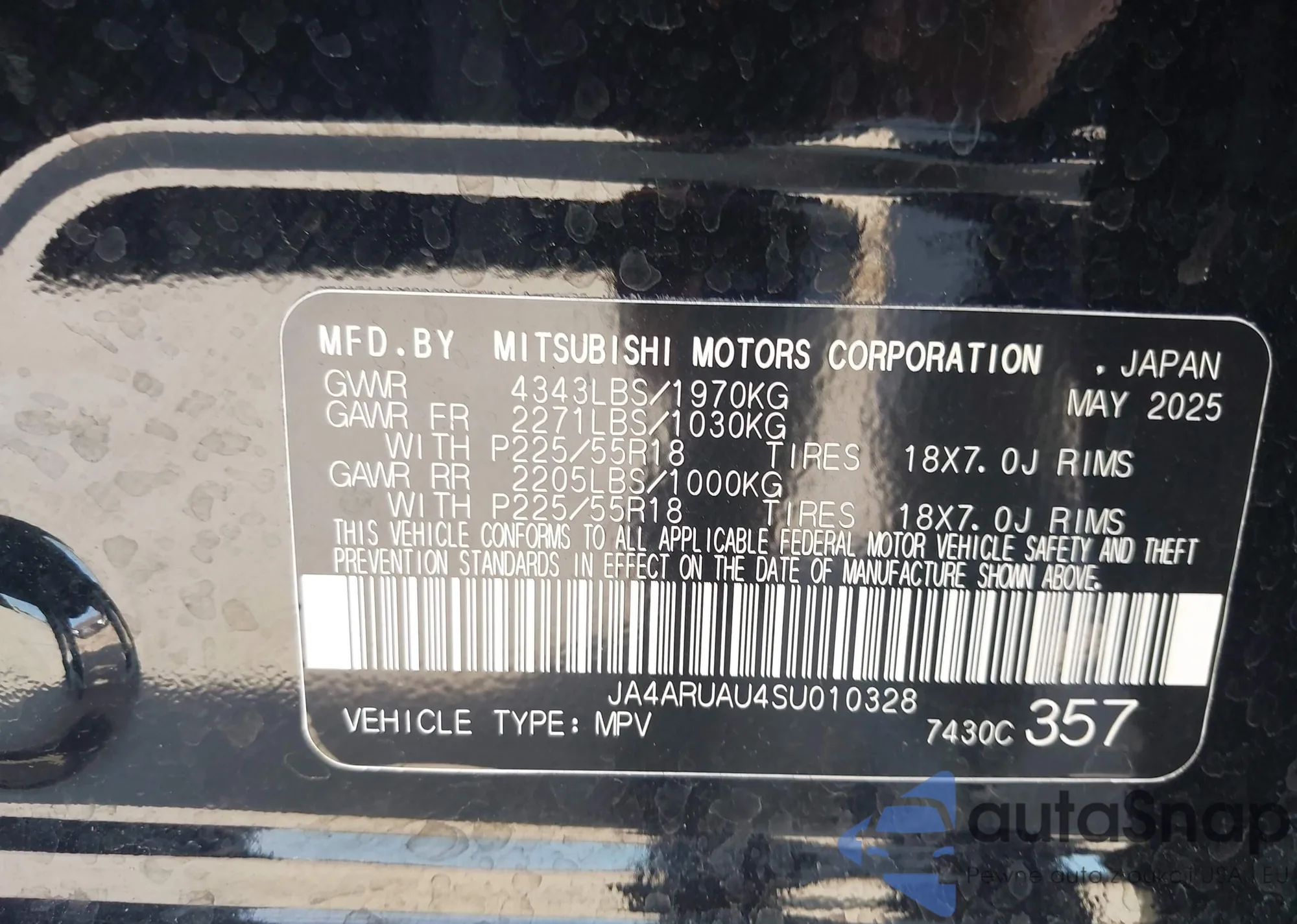 • VIN: JA4ARUAU4SU010328