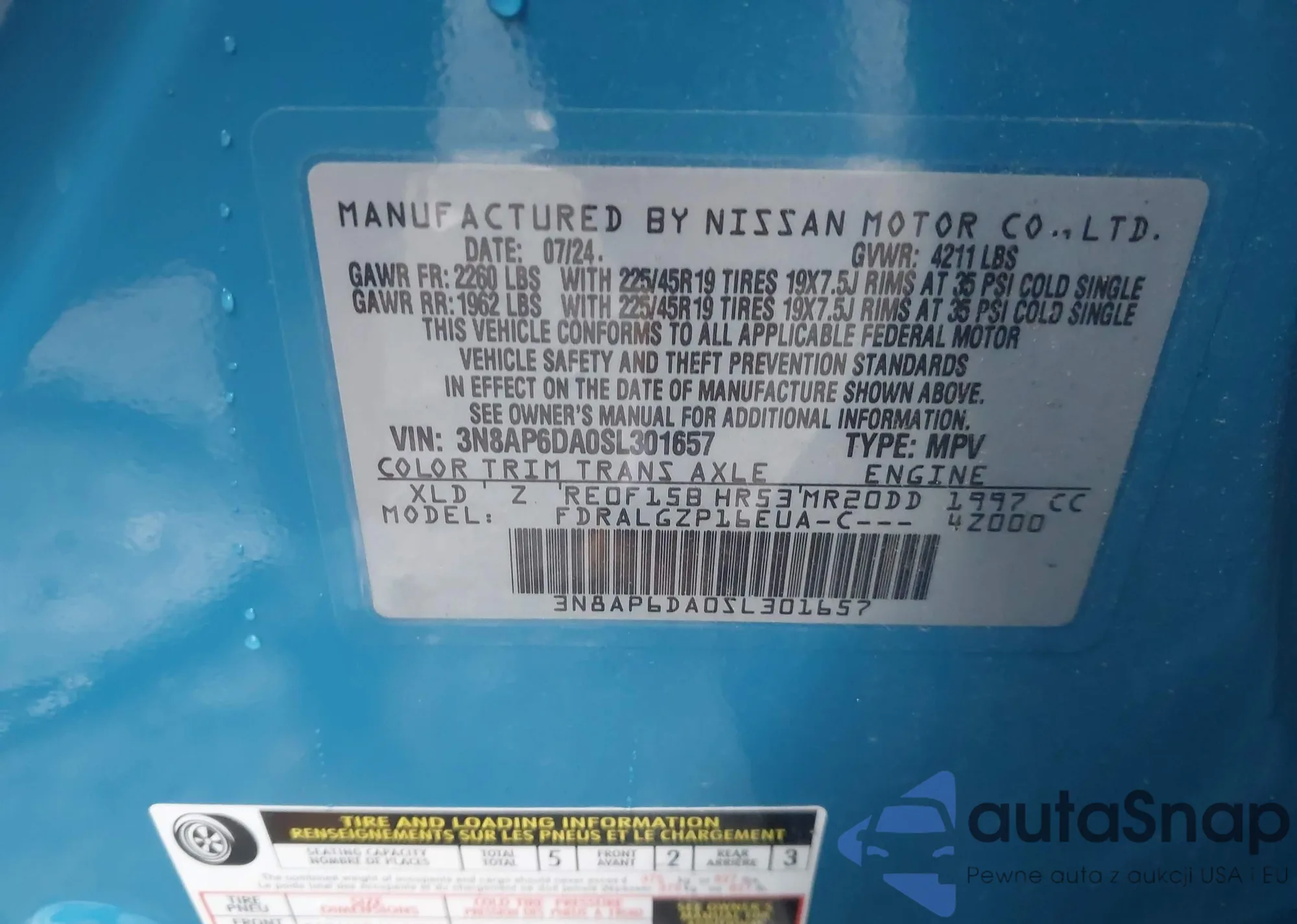 VIN: 3N8AP6DA0SL301657