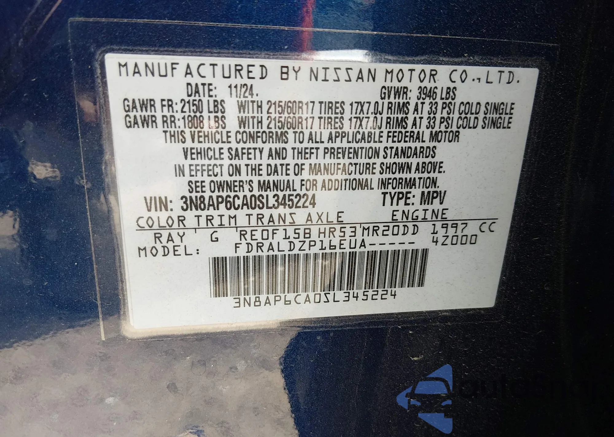 VIN: 3N8AP6CA0SL345224