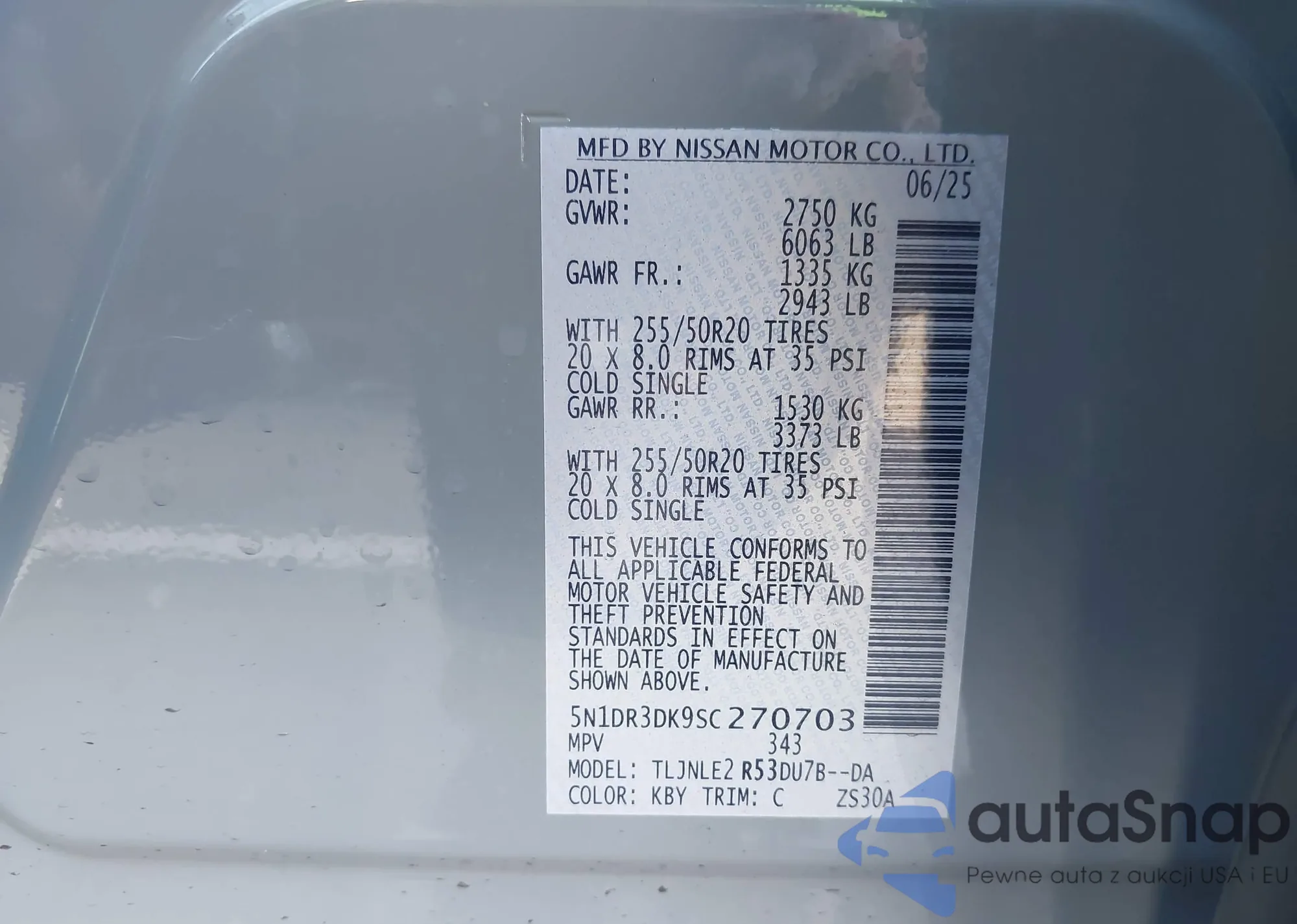 VIN: 5N1DR3DK9SC270703