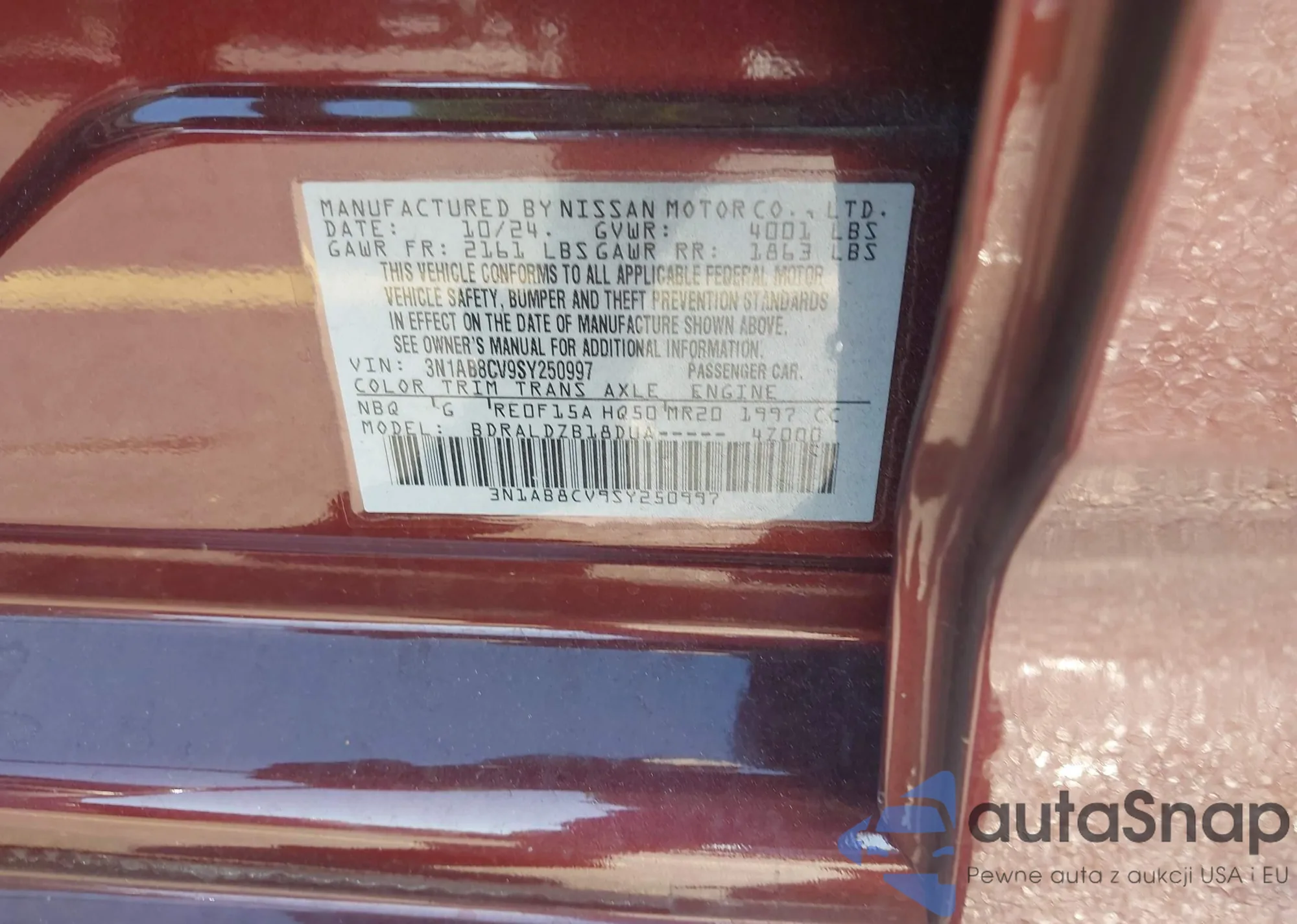 VIN: 3N1AB8CV9SY250997