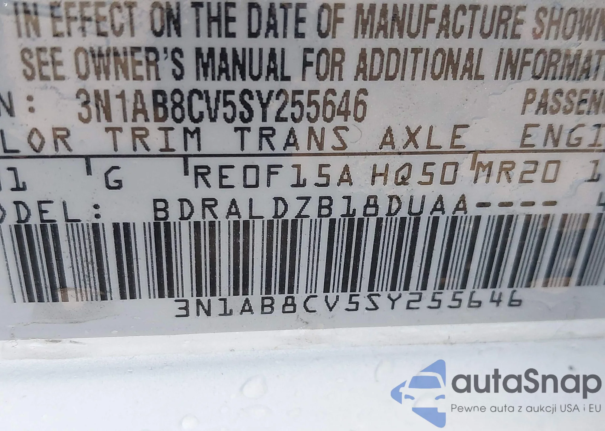 VIN: 3N1AB8CV5SY255646