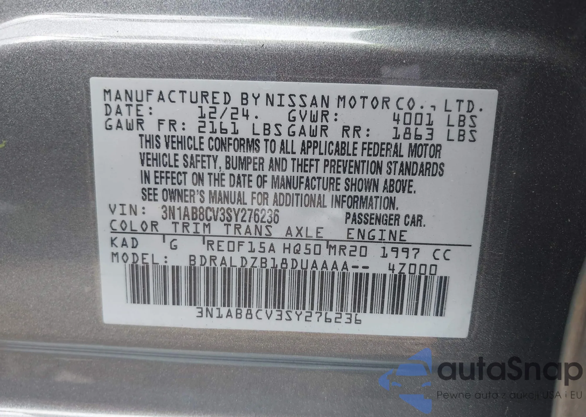 VIN: 3N1AB8CV3SY276236