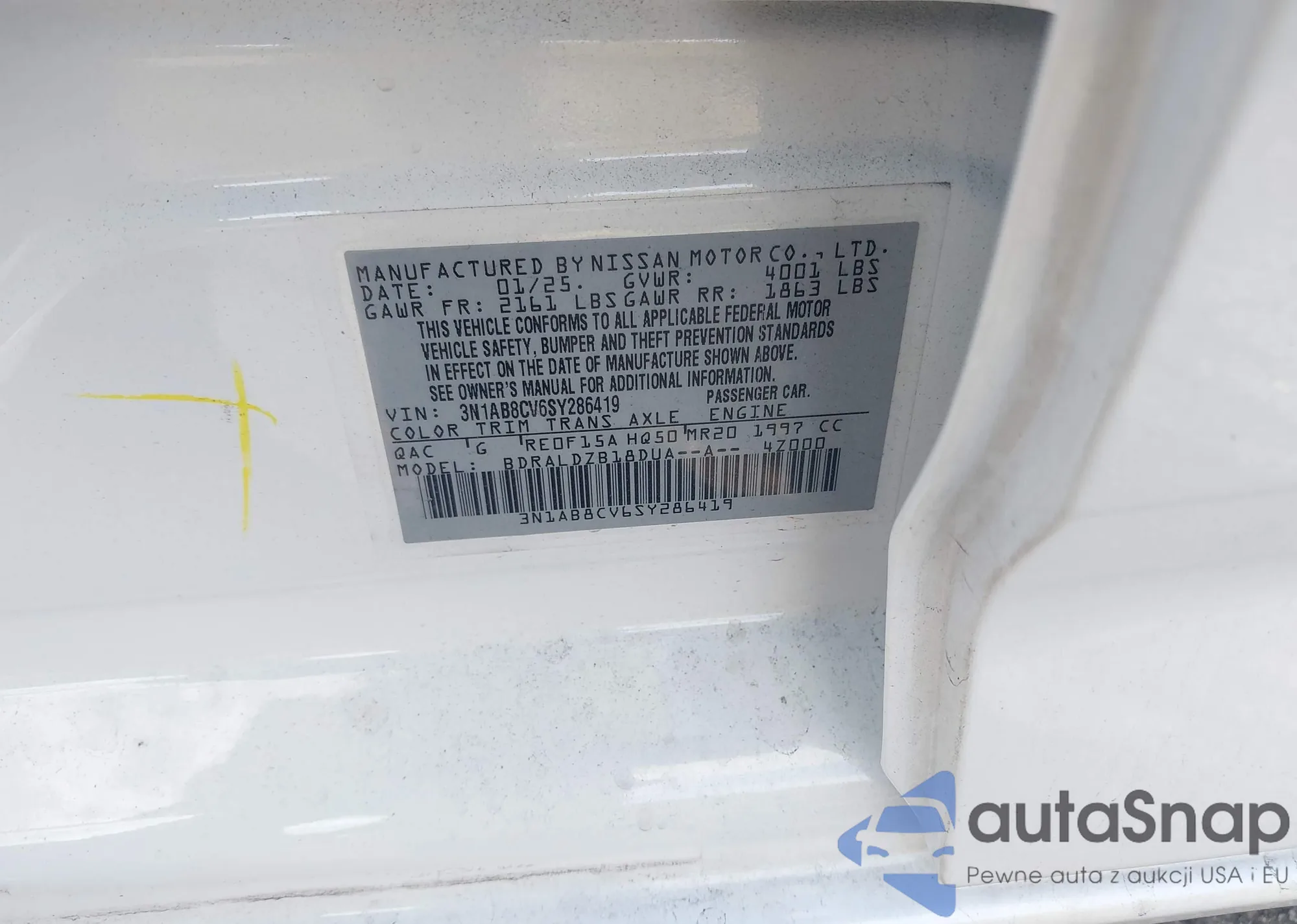 VIN: 3N1AB8CV6SY286419
