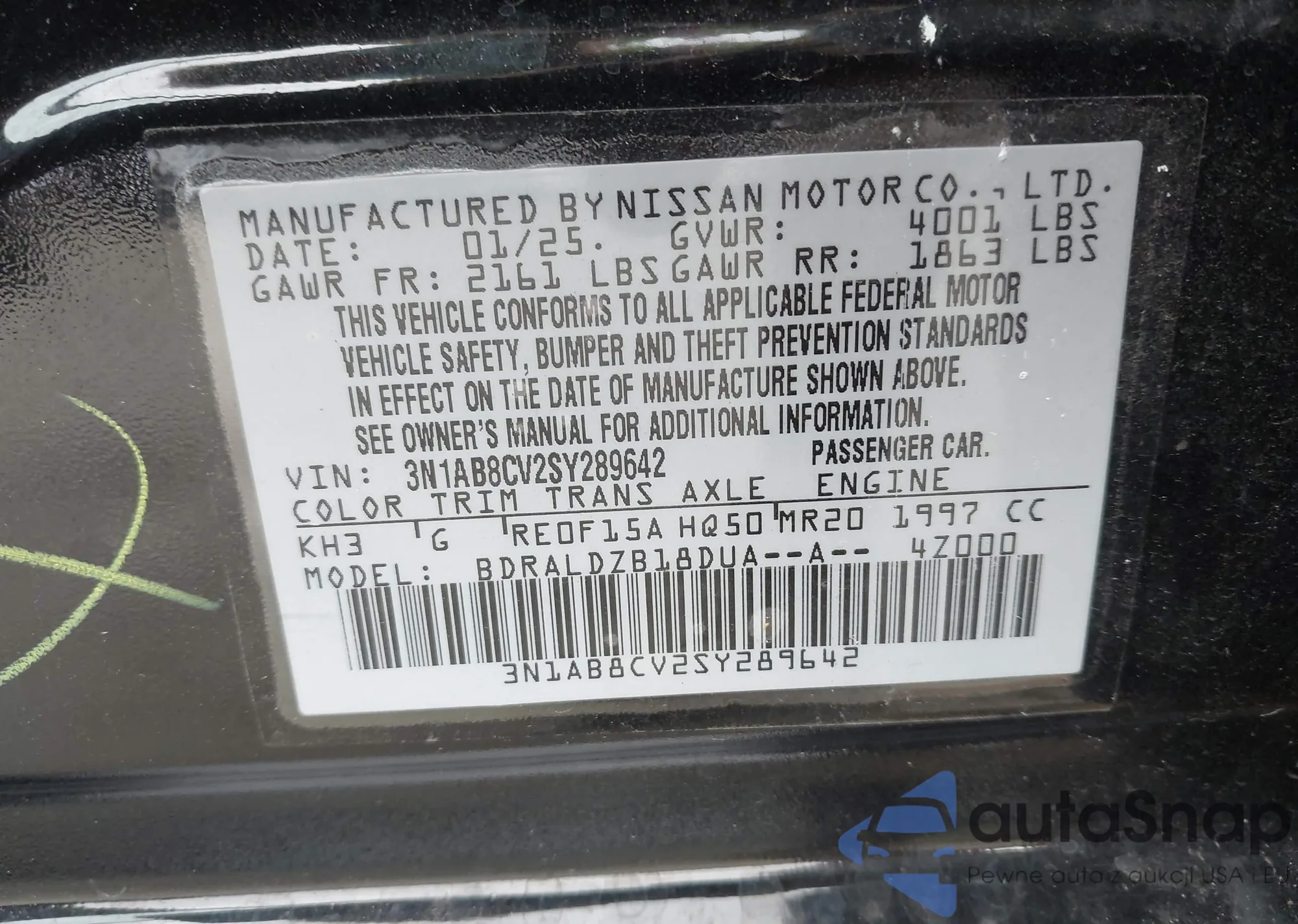 VIN: 3N1AB8CV2SY289642