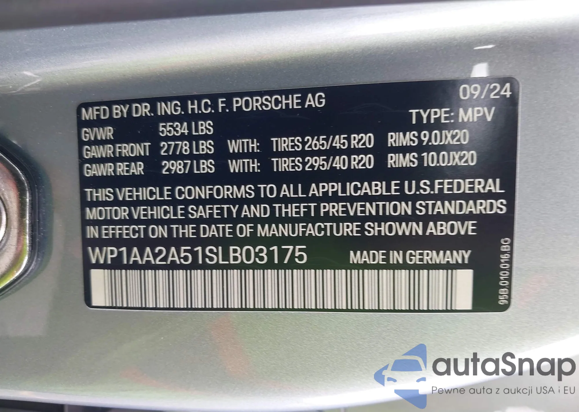 • VIN: WP1AA2A51SLB03175