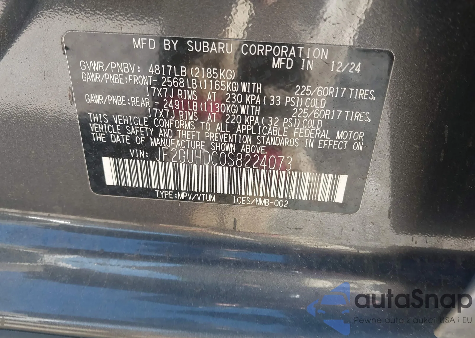 VIN: JF2GUHDC0S8224073