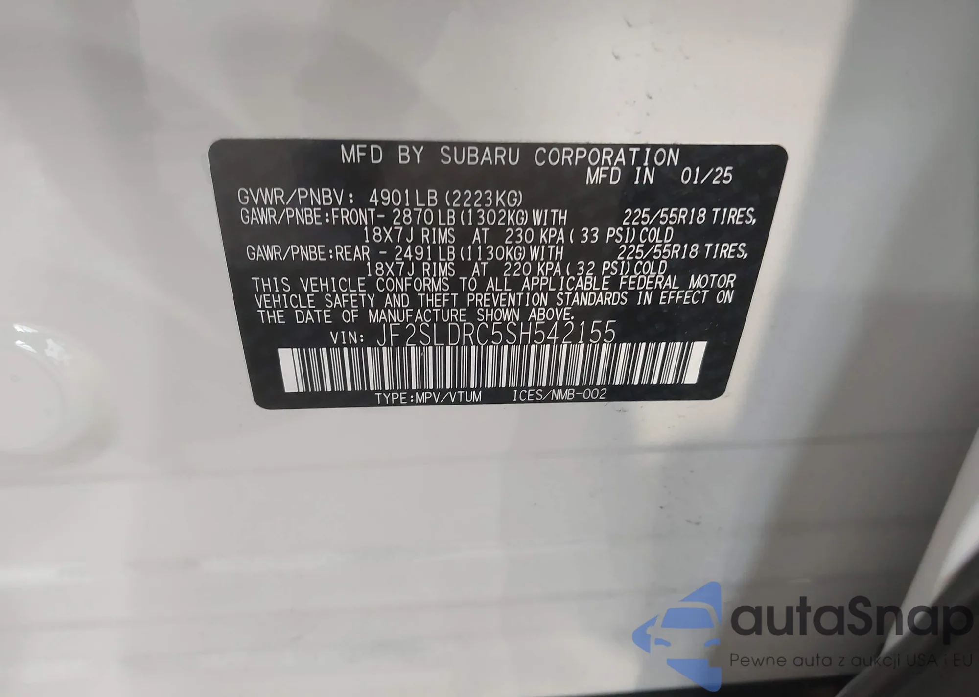 VIN: JF2SLDRC5SH542155