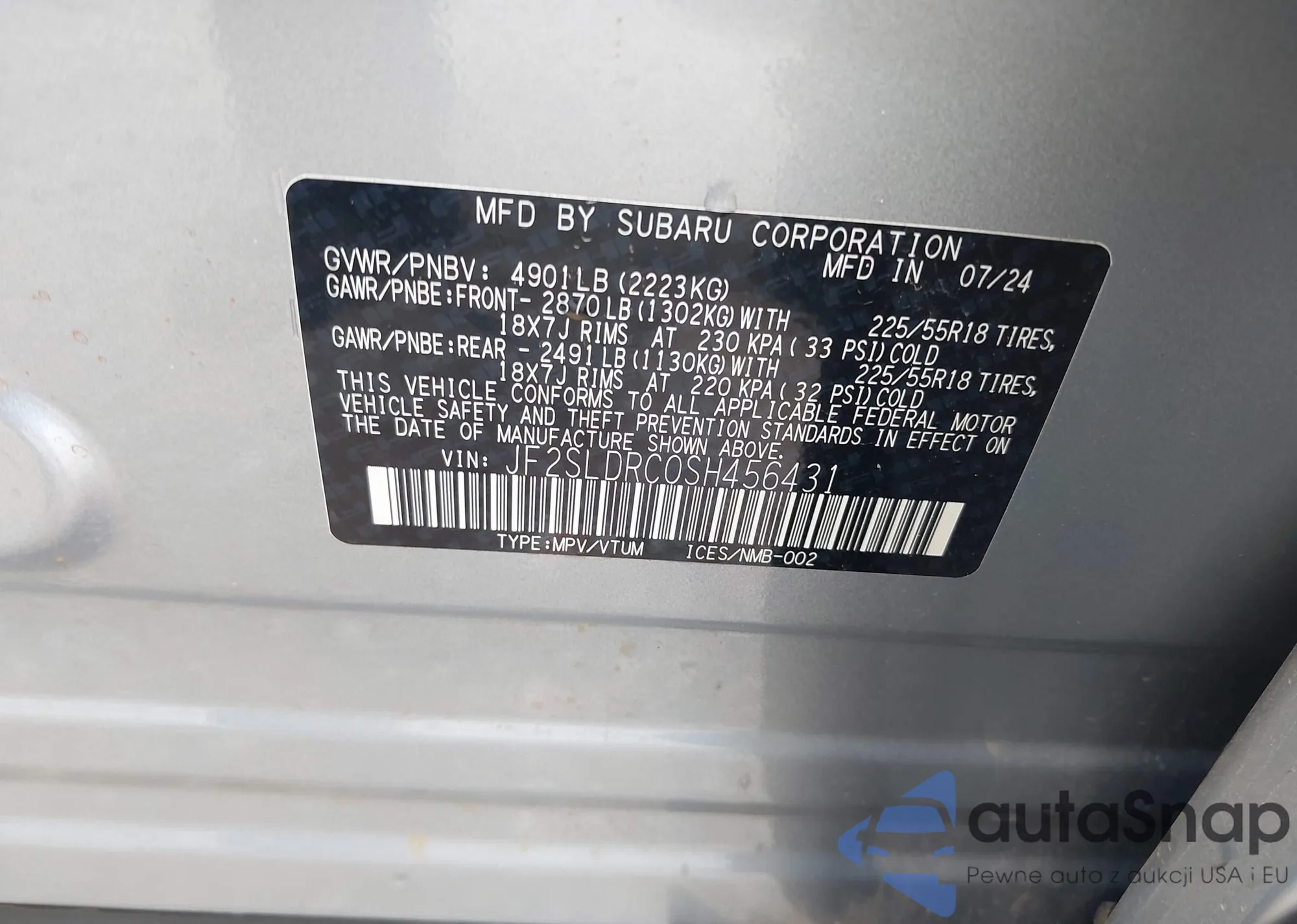 VIN: JF2SLDRC0SH456431