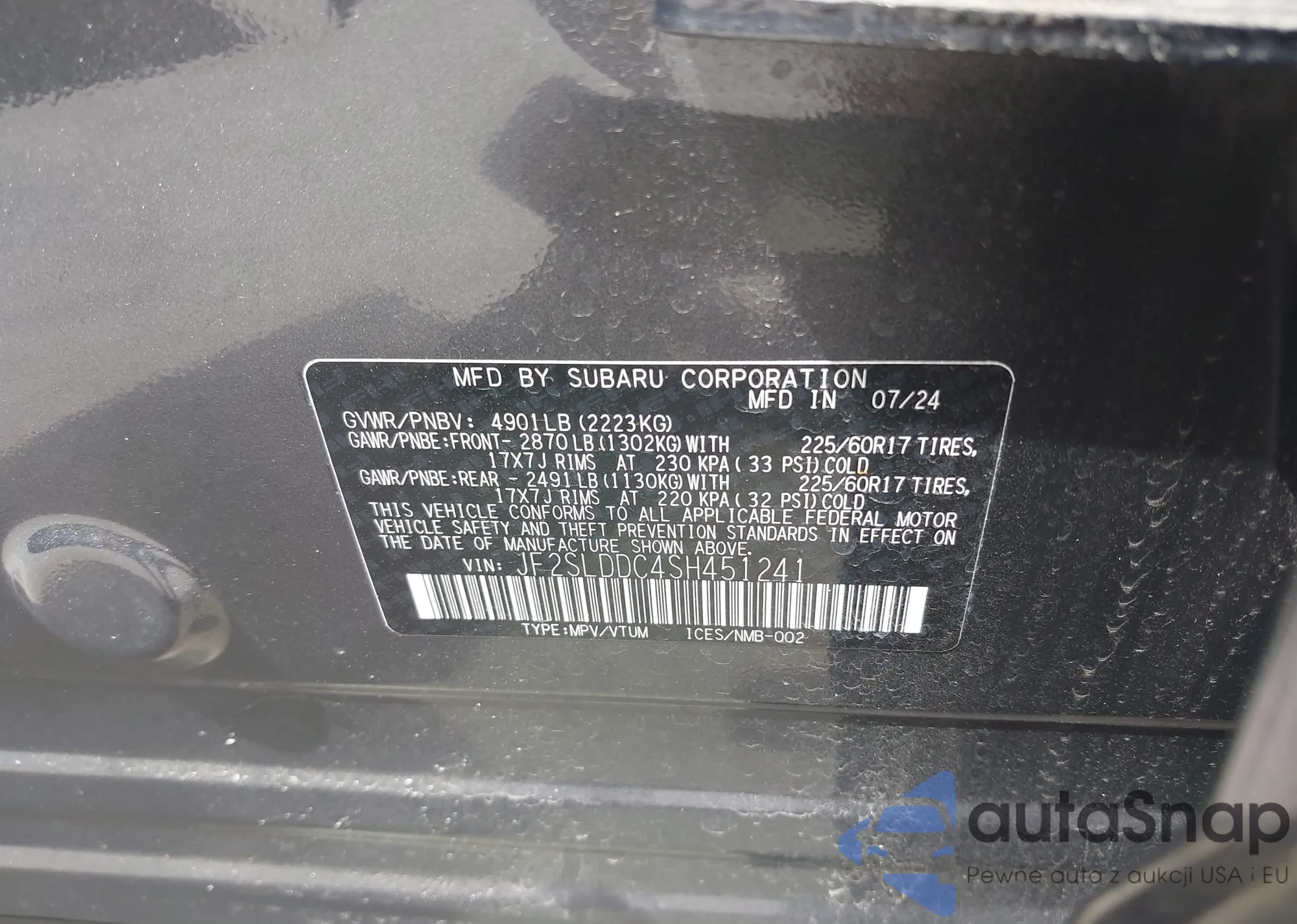 VIN: JF2SLDDC4SH451241