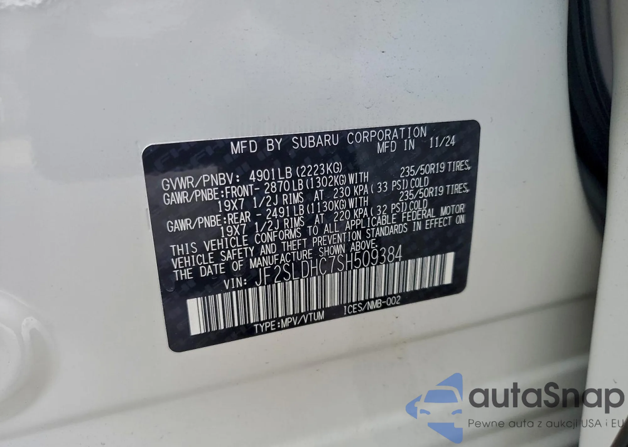 VIN: JF2SLDHC7SH509384