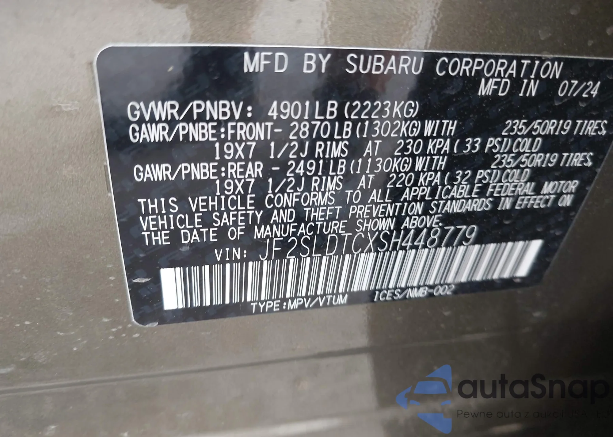 VIN: JF2SLDTCXSH448779