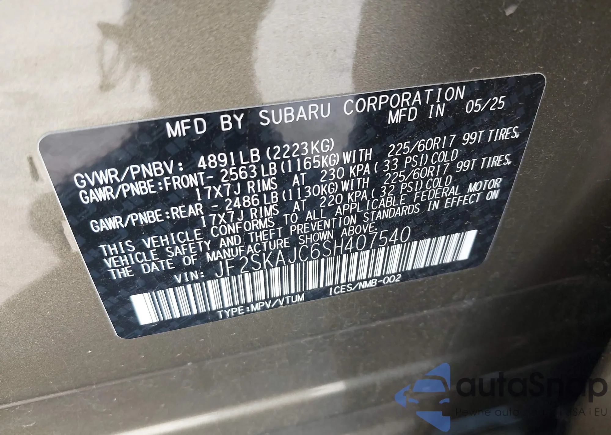Samochód Subaru Forester 2025 (VIN JF2SKAJC6SH407540) nie był wcześniej licytowany. Dokumenty są czyste, przebieg odpowiada lub jest niższy niż średnia rynku. Sprzedaje go firma ubezpieczeniowa – polecamy zakup. Dostawa do portu zajmie ok. 6–8 tygodni.