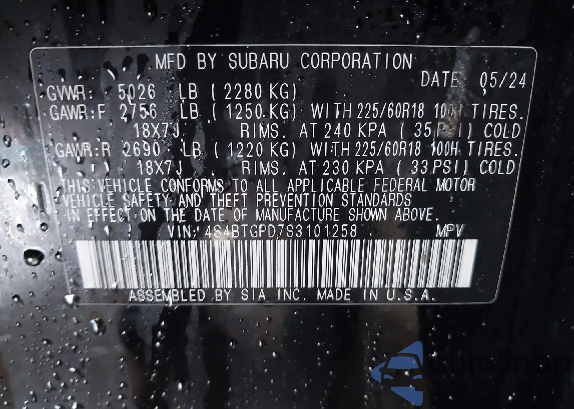 Samochód Subaru Outback 2025 (VIN 4S4BTGPD7S3101258) nie był wcześniej licytowany. Dokumenty są czyste, przebieg odpowiada lub jest niższy niż średnia rynku. Sprzedaje go firma ubezpieczeniowa – polecamy zakup. Dostawa do portu zajmie ok. 6–8 tygodni.