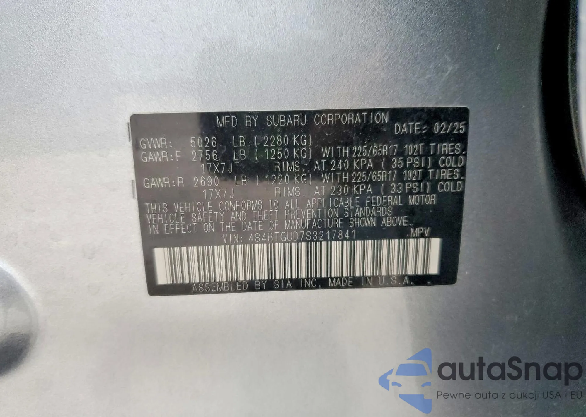 Samochód Subaru Outback 2025 (VIN 4S4BTGUD7S3217841) sprzedaje go niezweryfikowany sprzedawca. Zalecamy raport Carfax i potwierdzenie możliwości rejestracji pojazdu przed zakupem.
