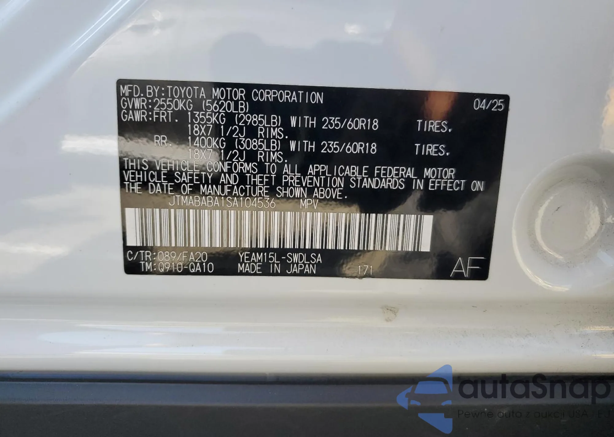 Samochód Subaru Solterra 2025 (VIN JTMABABA1SA104536) nie był wcześniej licytowany. Dokumenty są czyste, przebieg odpowiada lub jest niższy niż średnia rynku. Sprzedaje go firma ubezpieczeniowa – polecamy zakup. Dostawa do portu zajmie ok. 6–8 tygodni.