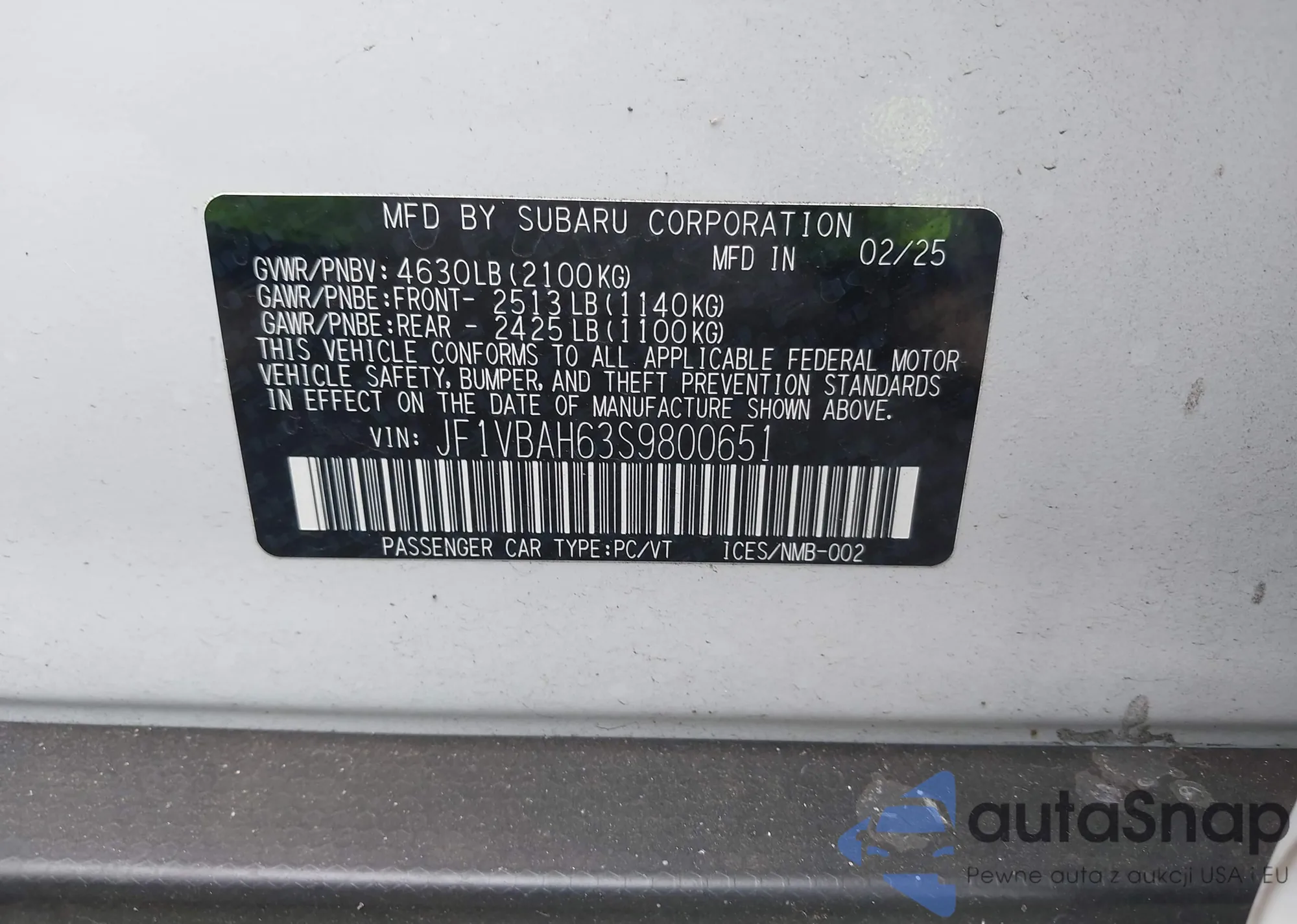 • VIN: JF1VBAH63S9800651