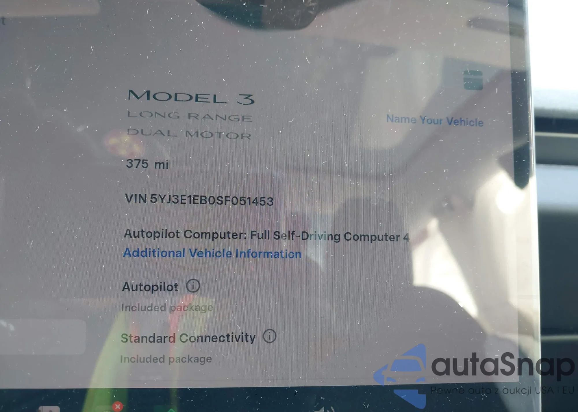 VIN: 5YJ3E1EB0SF051453