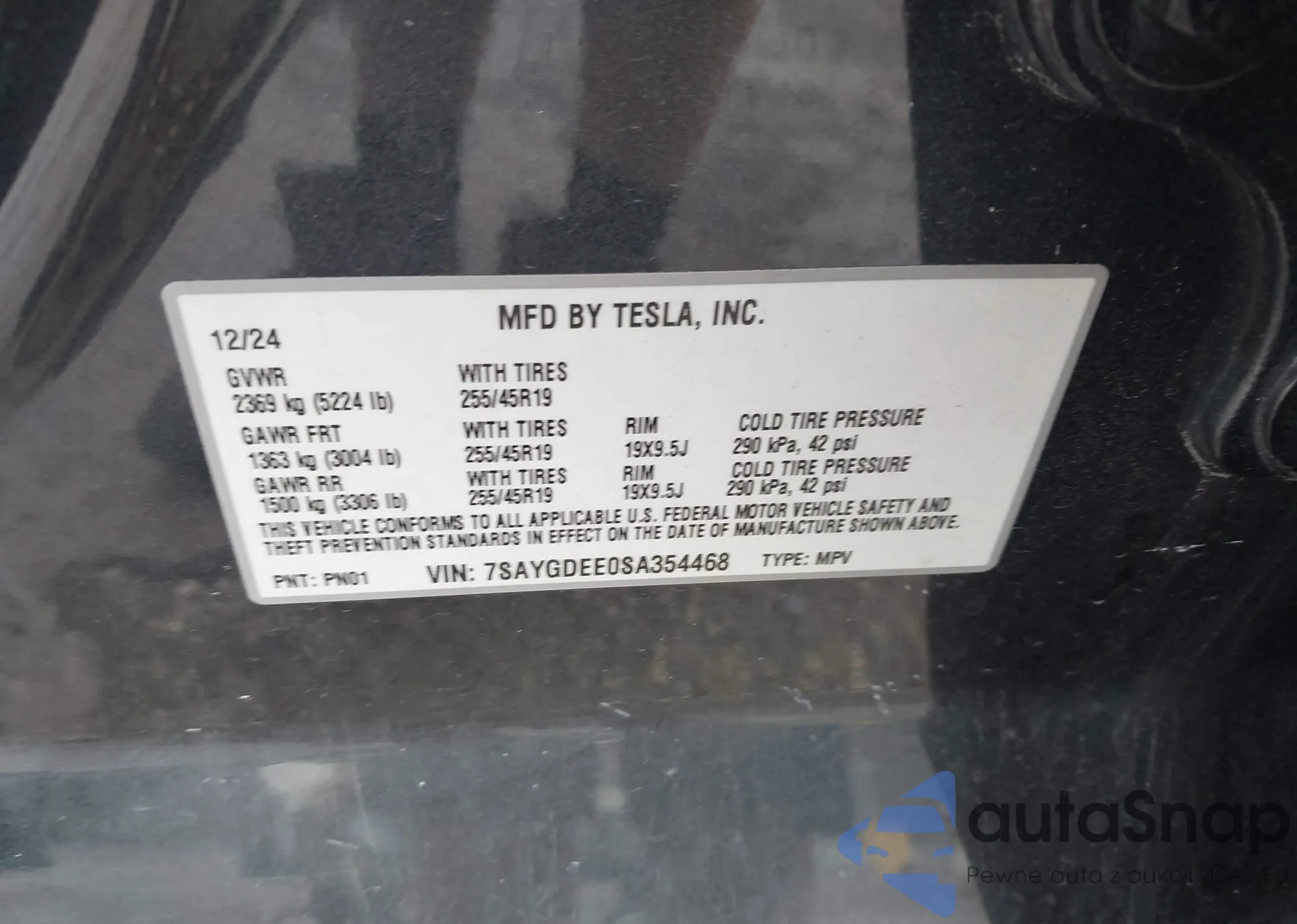 VIN: 7SAYGDEE0SA354468