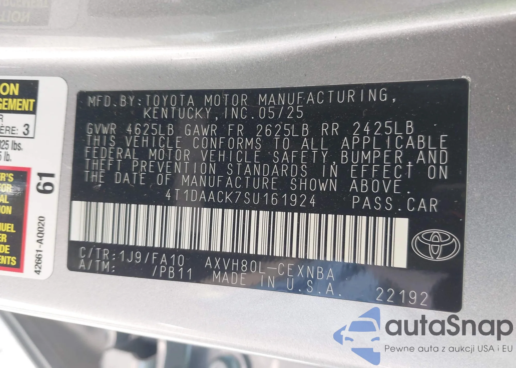 VIN: 4T1DAACK7SU161924