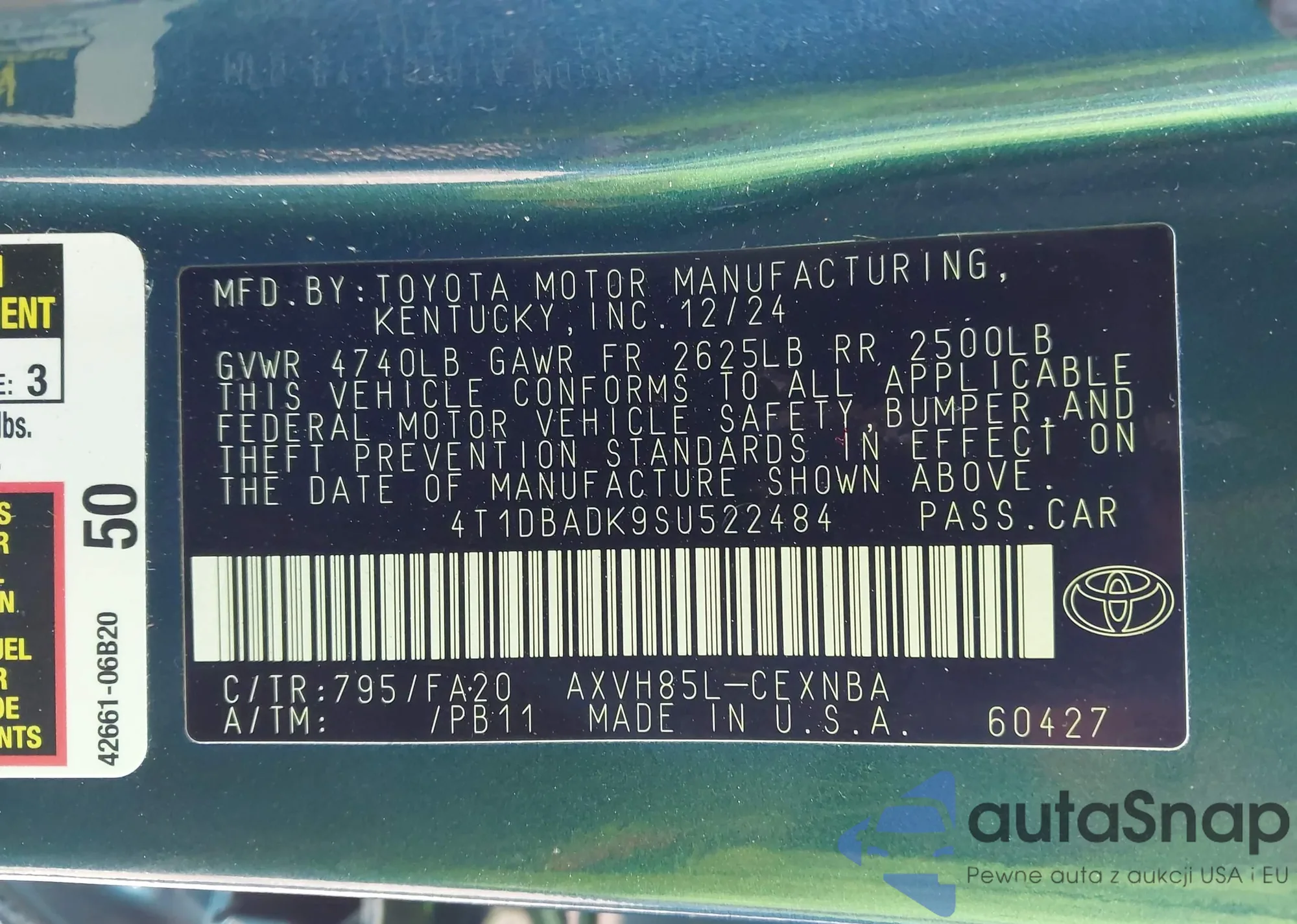 Samochód Toyota Camry 2025 (VIN 4T1DBADK9SU522484) nie był wcześniej licytowany. Dokumenty są czyste, przebieg odpowiada lub jest niższy niż średnia rynku. Sprzedaje go firma ubezpieczeniowa – polecamy zakup. Dostawa do portu zajmie ok. 6–8 tygodni.