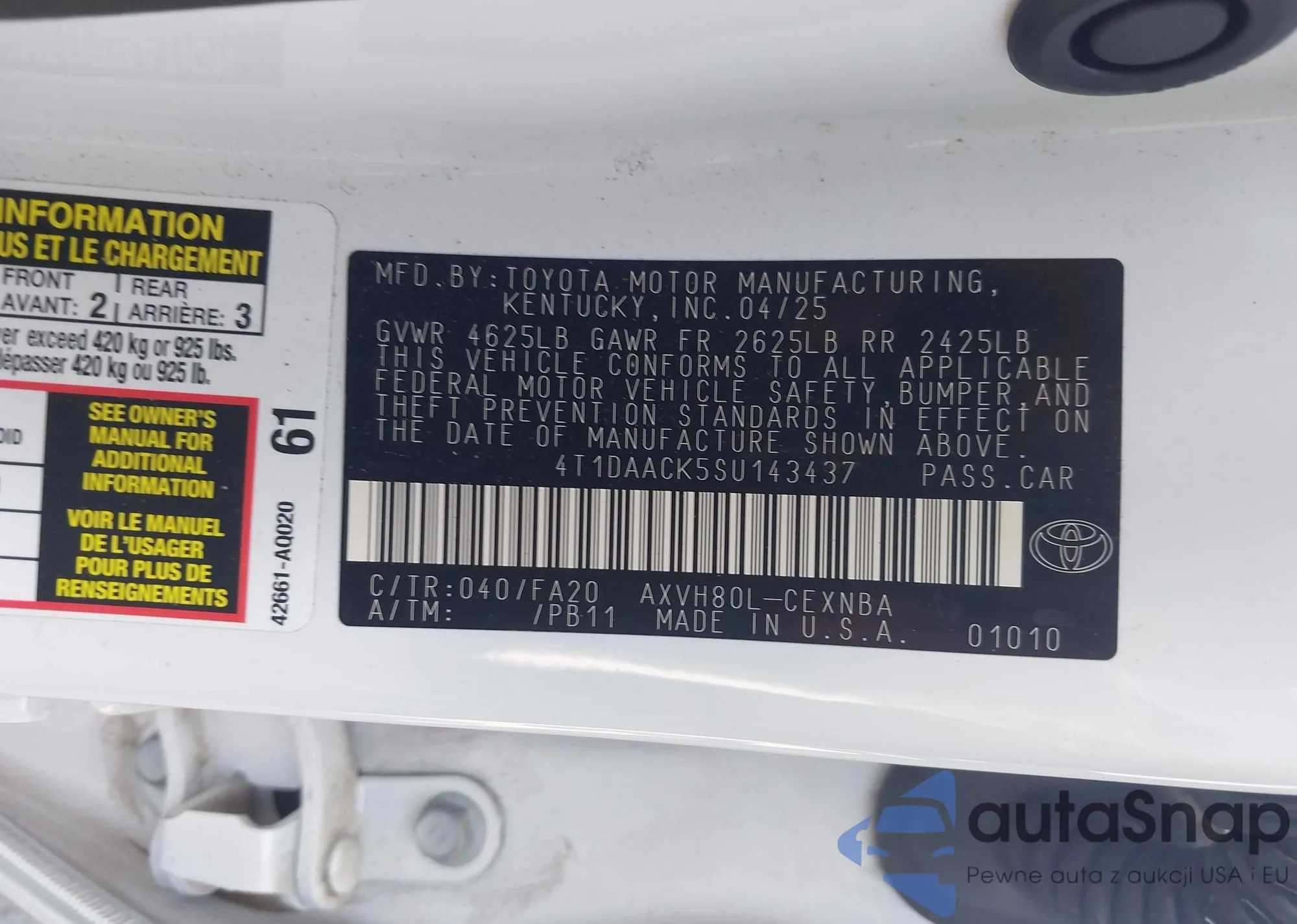 VIN: 4T1DAACK5SU143437