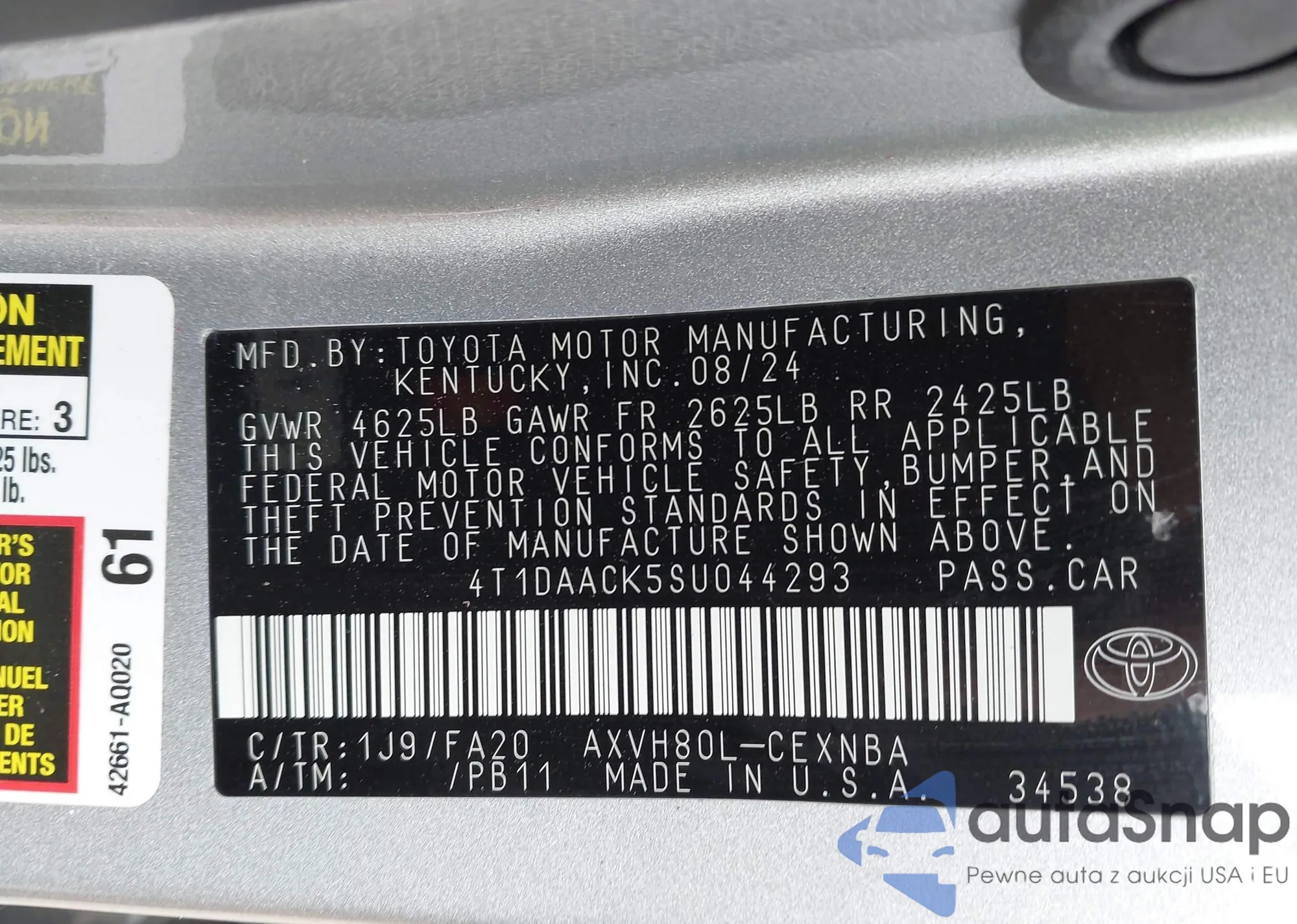 Samochód Toyota Camry 2025 (VIN 4T1DAACK5SU044293) nie był wcześniej licytowany. Dokumenty są czyste, przebieg odpowiada lub jest niższy niż średnia rynku. Sprzedaje go firma ubezpieczeniowa – polecamy zakup. Dostawa do portu zajmie ok. 6–8 tygodni.