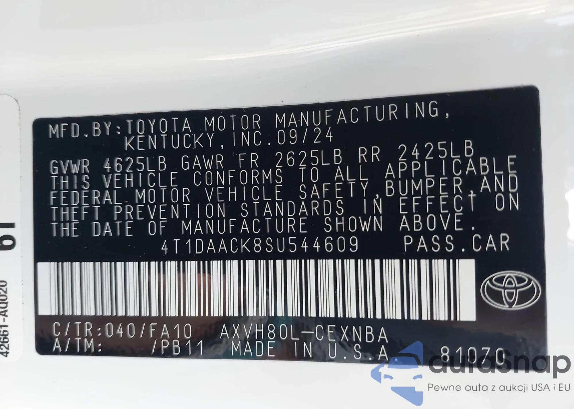 VIN: 4T1DAACK8SU544609