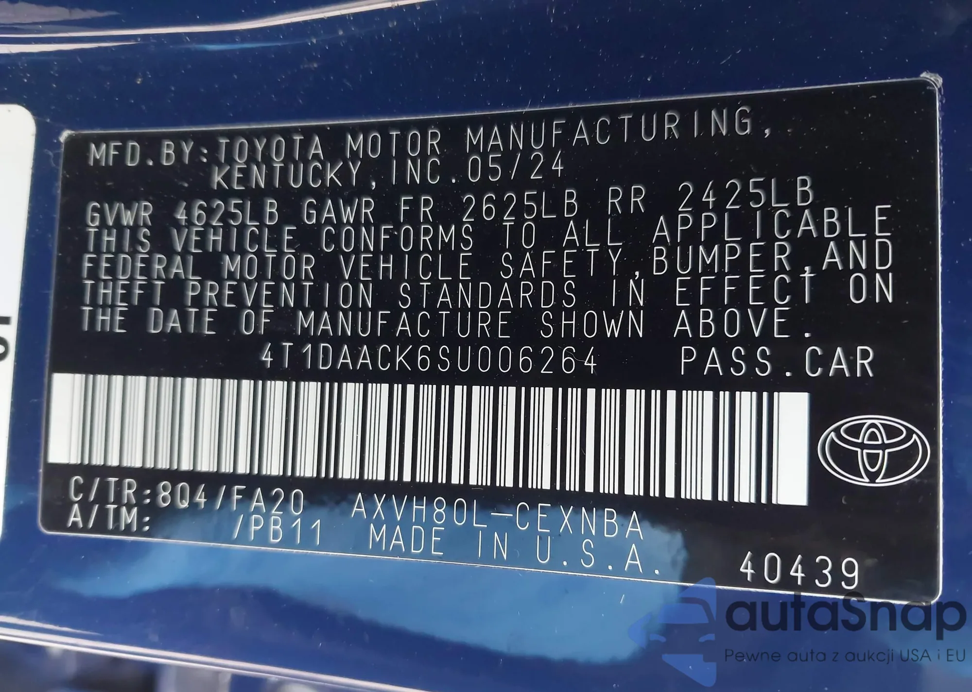 VIN: 4T1DAACK6SU006264