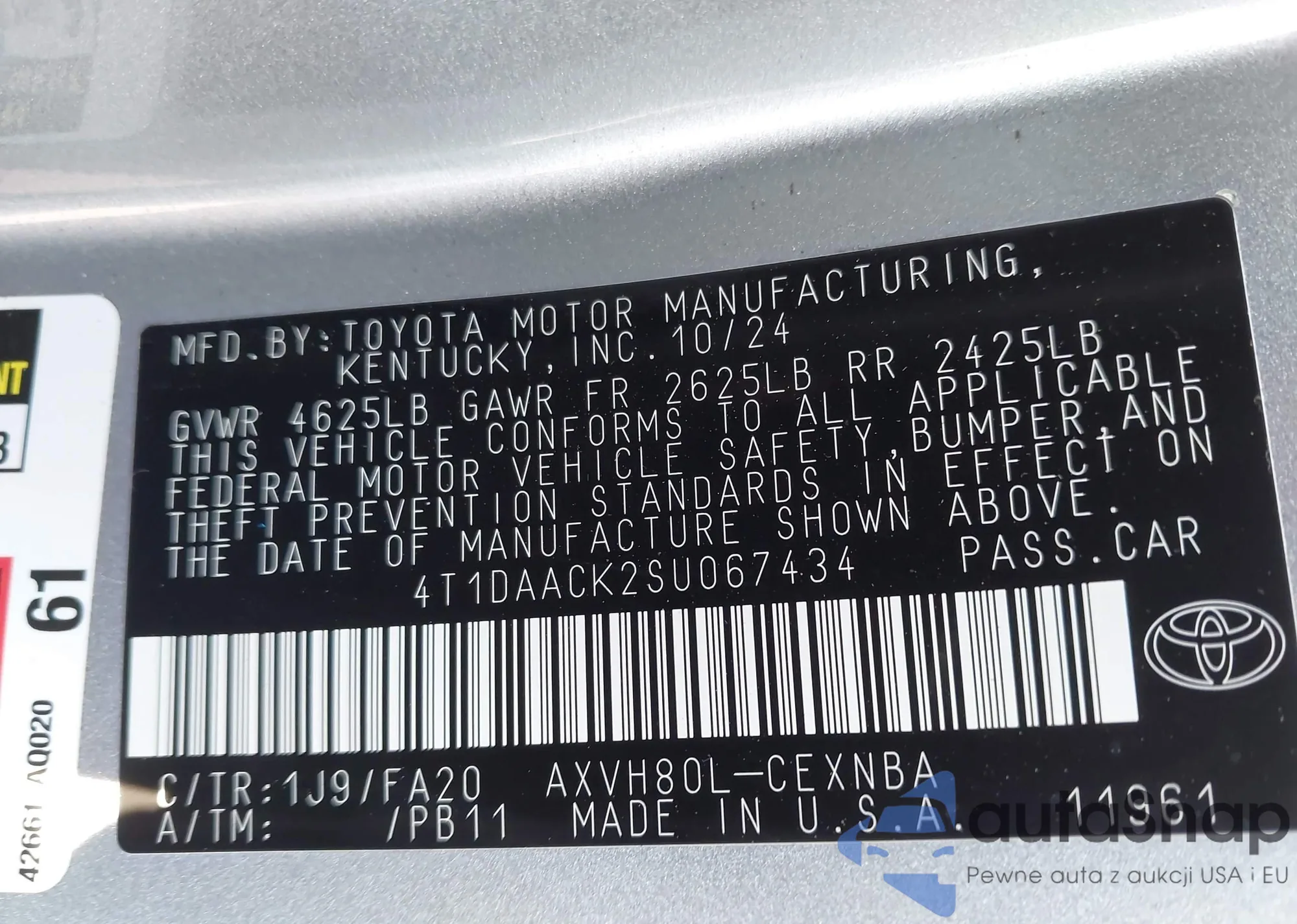 VIN: 4T1DAACK2SU067434