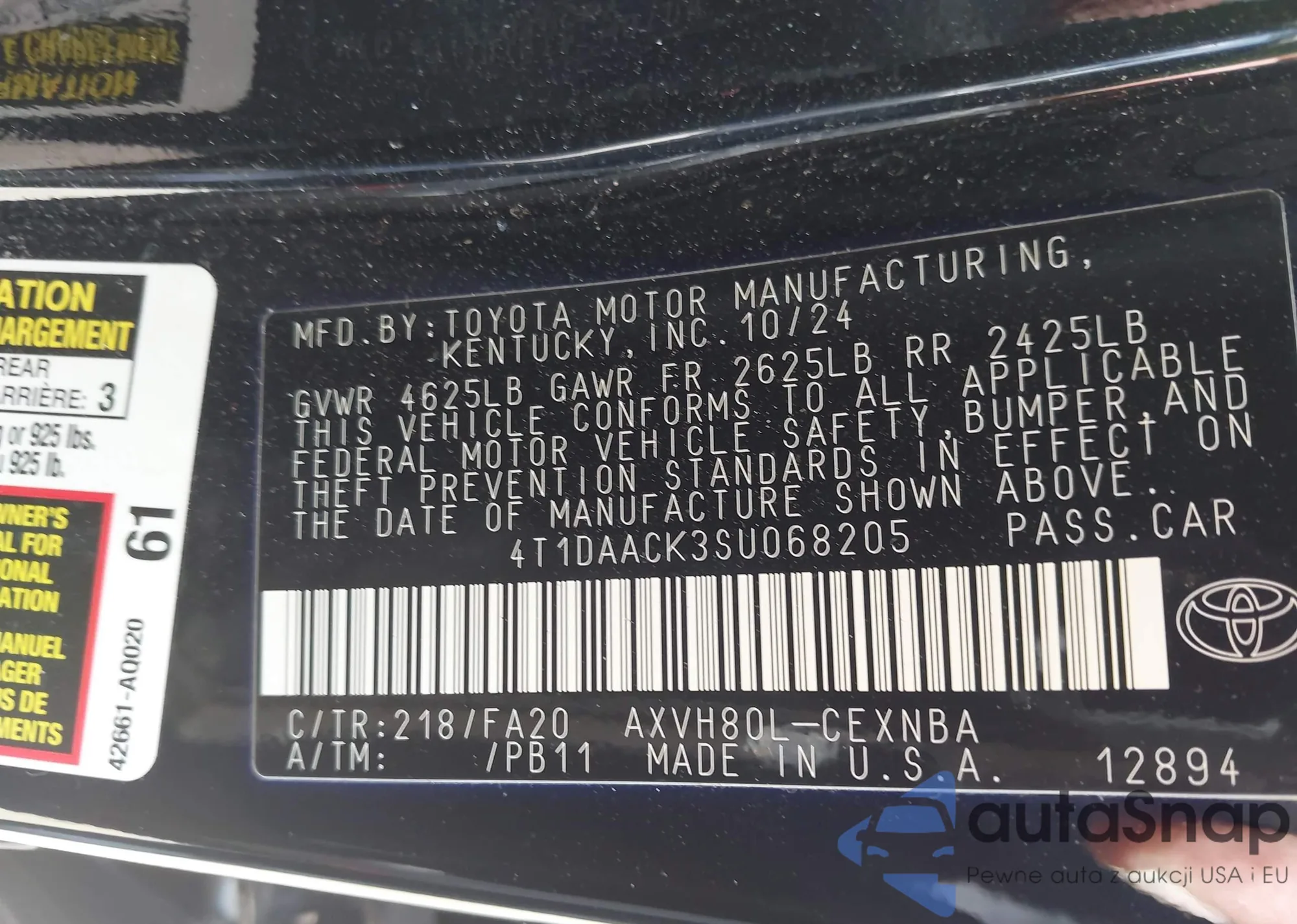 Samochód Toyota Camry 2025 (VIN 4T1DAACK3SU068205) nie był wcześniej licytowany. Dokumenty są czyste, przebieg odpowiada lub jest niższy niż średnia rynku. Sprzedaje go firma ubezpieczeniowa – polecamy zakup. Dostawa do portu zajmie ok. 6–8 tygodni.