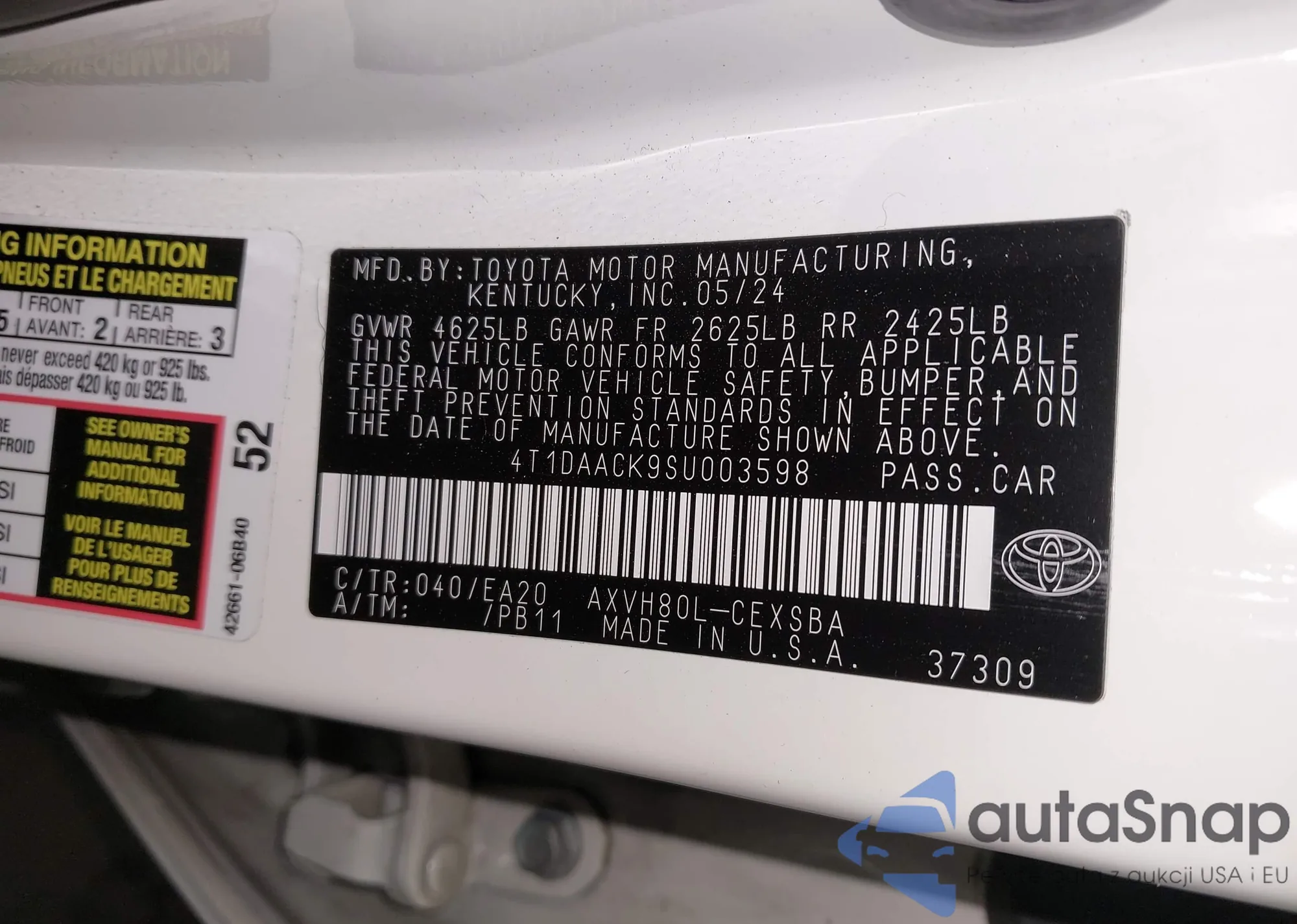 VIN: 4T1DAACK9SU003598